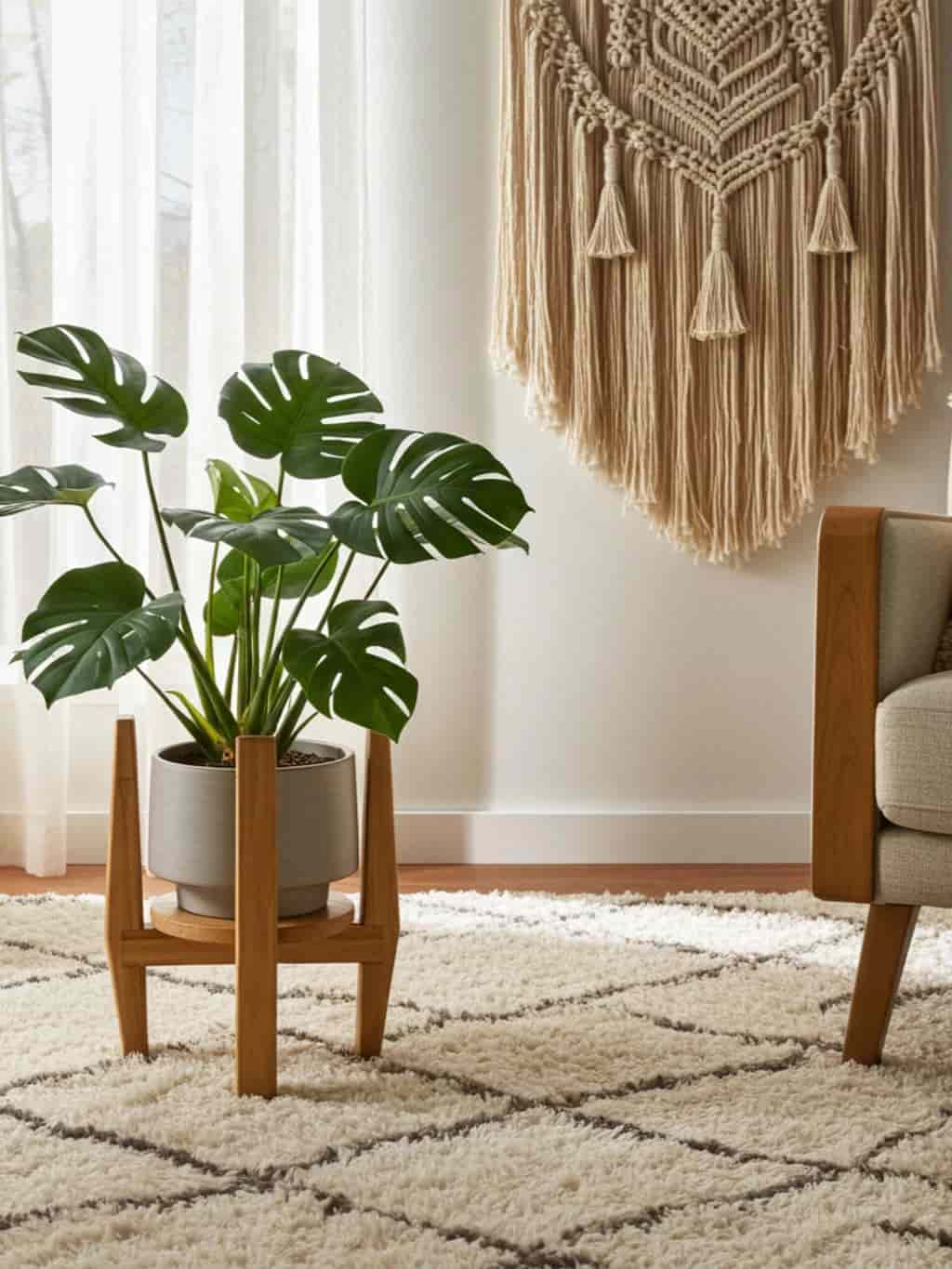👉 Tip: Combine light wood with dark green leaves – for example, a Monstera or Ficus will stand out beautifully in contrast with ash or beech wood.