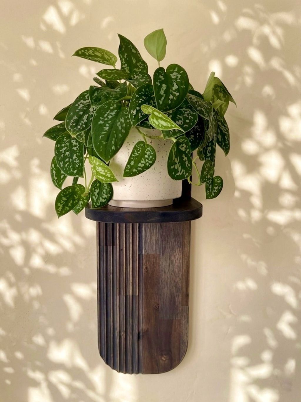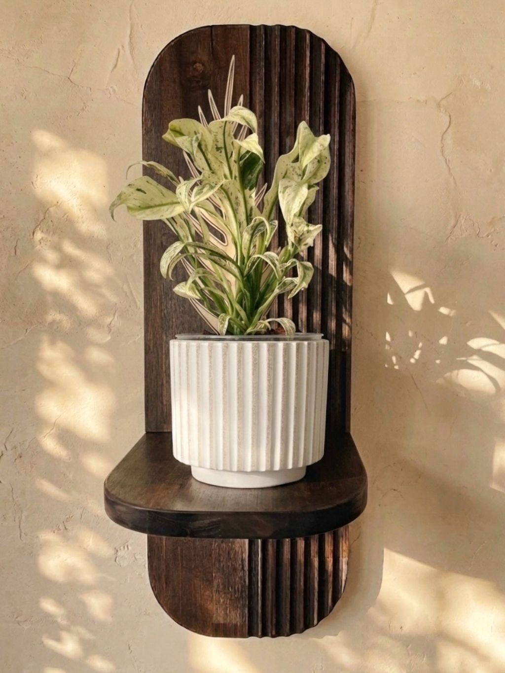 -> wooden wall shelf, wall-mounted plant shelf, wall plant holder, hanging plant stand, plant shelf, wooden plant stand, wooden wall decor, shelf, wood
