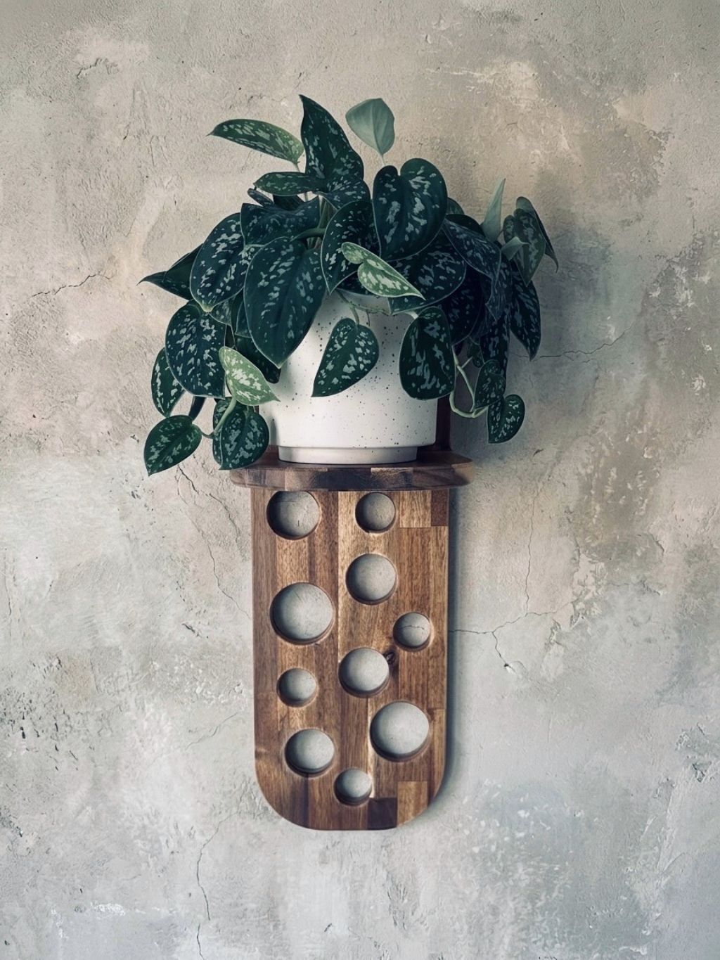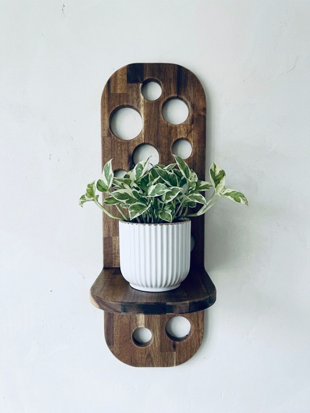Wooden Wall Plant Stand CIRCULUS: Acacia (Circular Cutouts)