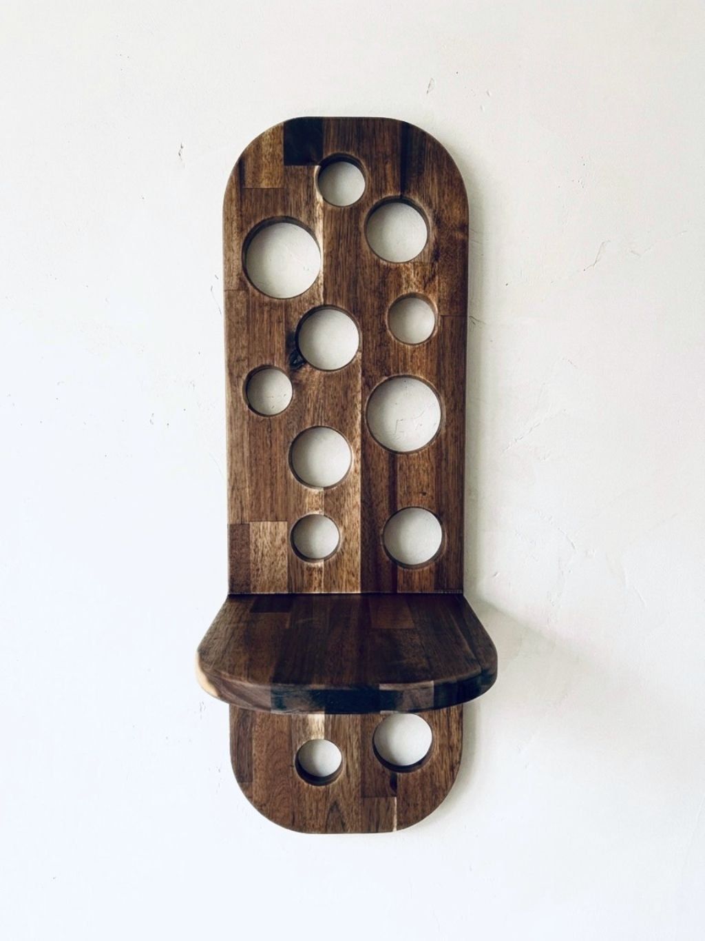 Wooden wall plant stand made of acacia wood – a wall-mounted shelf with a unique "bubble" design. Can be mounted in two ways.