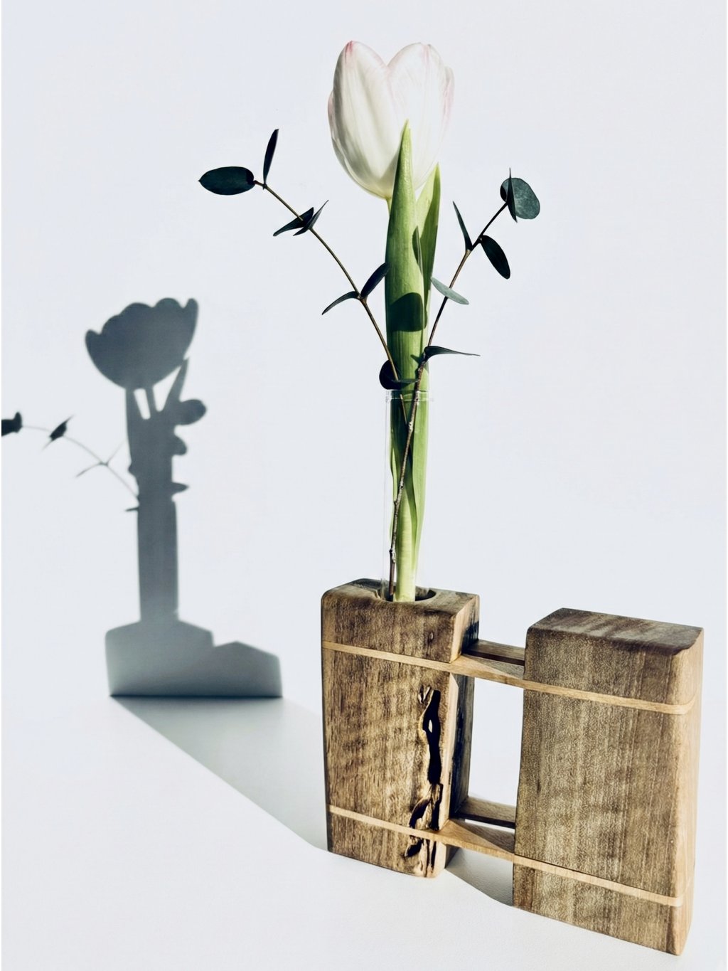Bring a piece of raw nature transformed into modern art to your interior. NEXUS (from Lat. connection) is not just an ordinary vase. It is a design object that celebrates the depth of walnut wood and the purity of geometric lines.