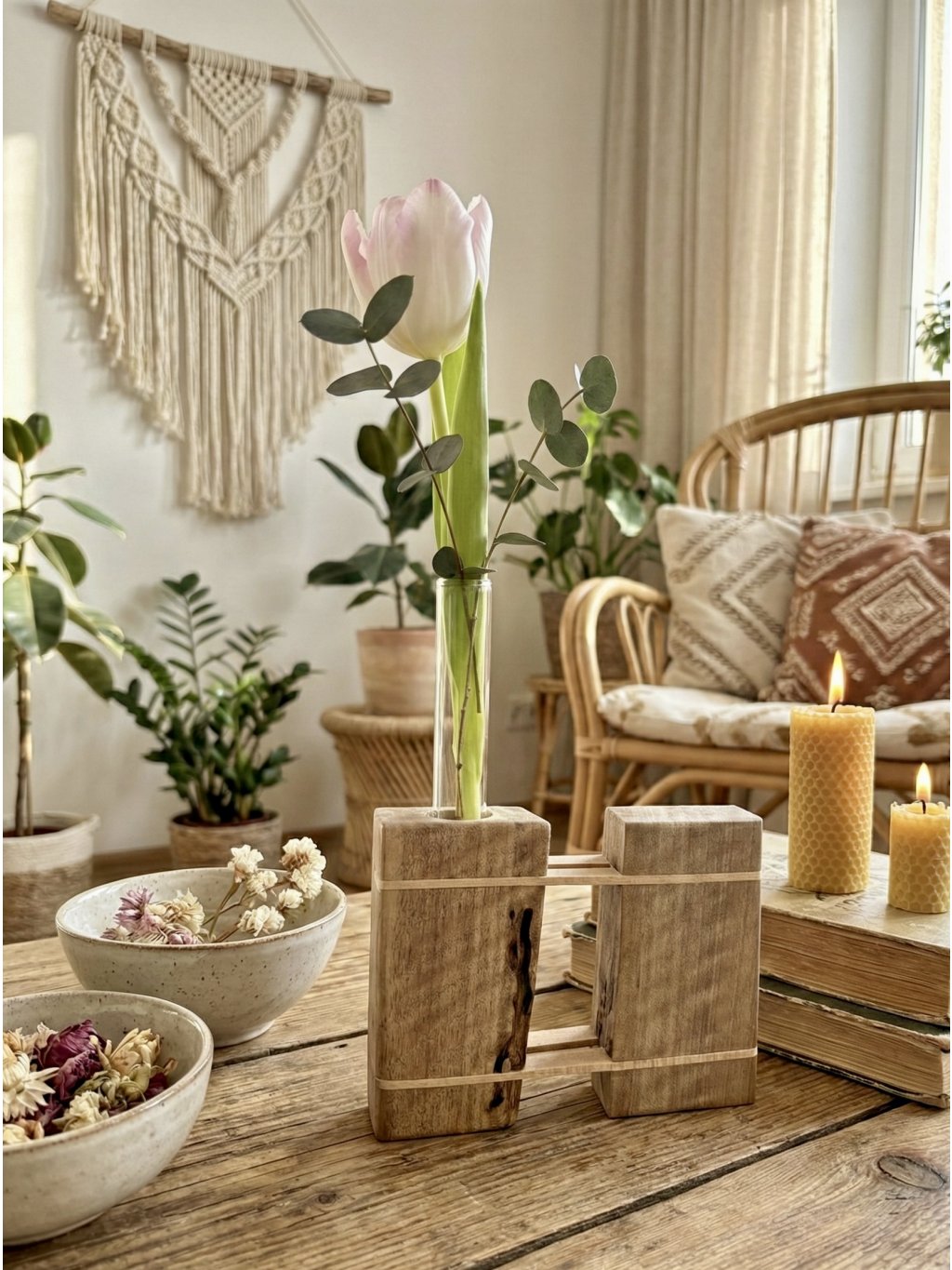 - Fresh flowers: Ideal for one dominant flower (tulip, rose, daffodil).