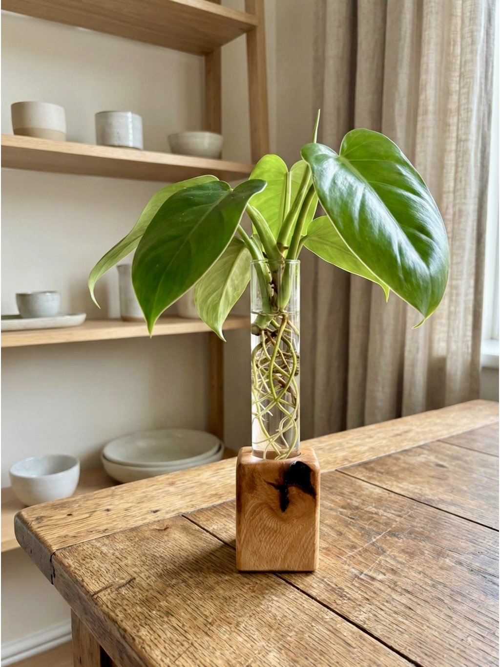 This handcrafted propagation station made of beech wood with a test tube is exactly that. It’s not just an accessory, but a design piece that combines simplicity, minimalism, and pure elegance.