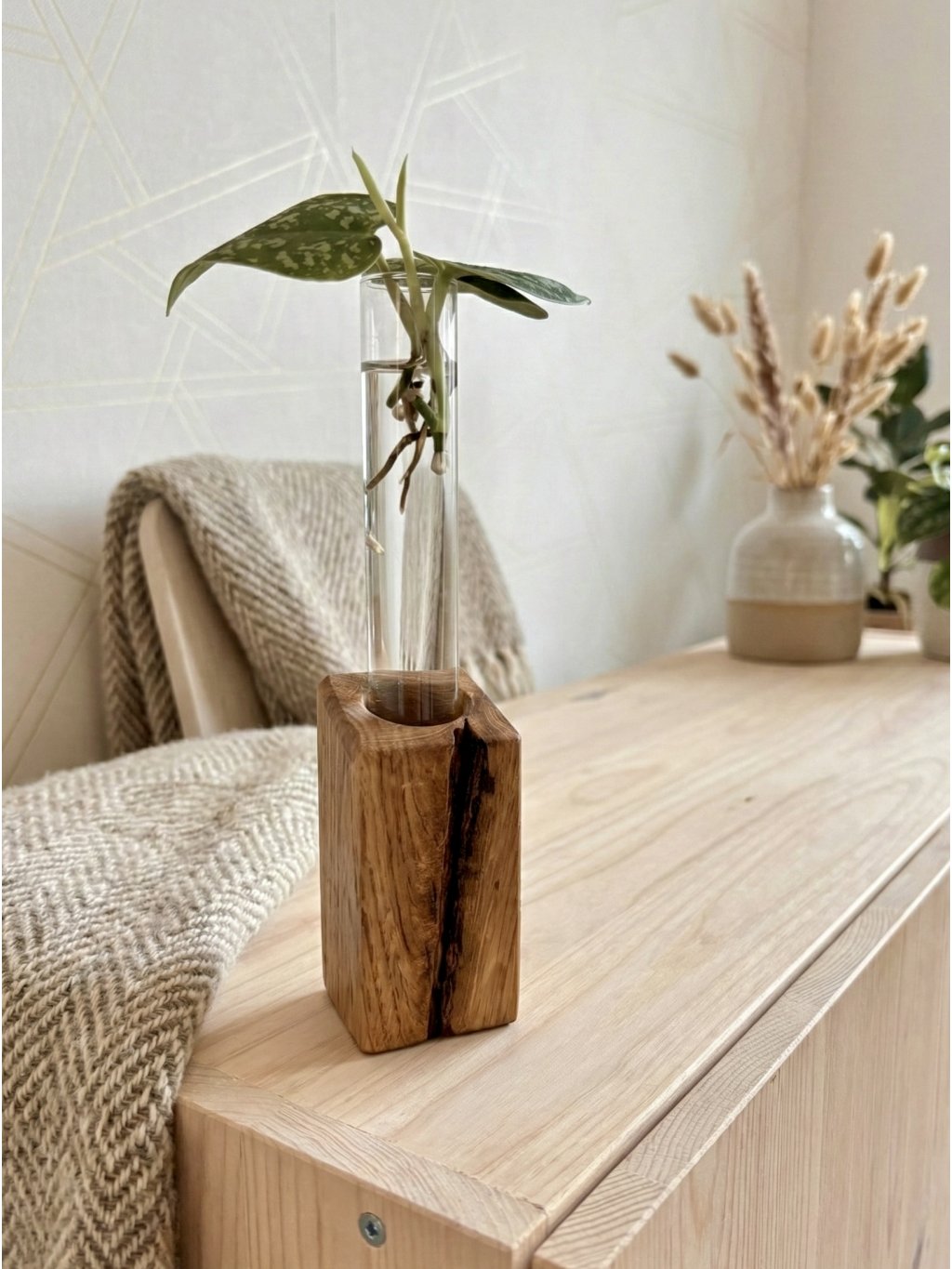 This handcrafted propagation station made of oak wood with a test tube is exactly that. It’s not just an accessory, but a design piece that combines simplicity, minimalism, and pure elegance.