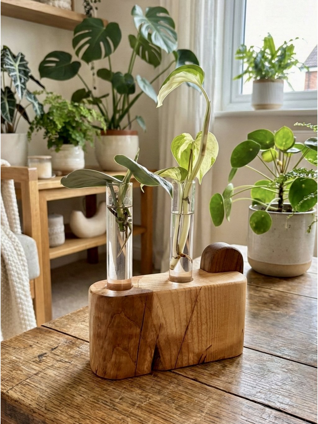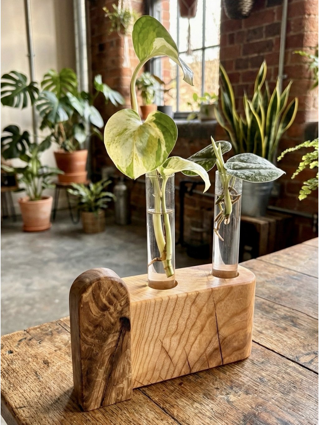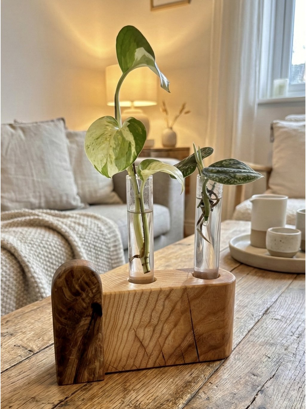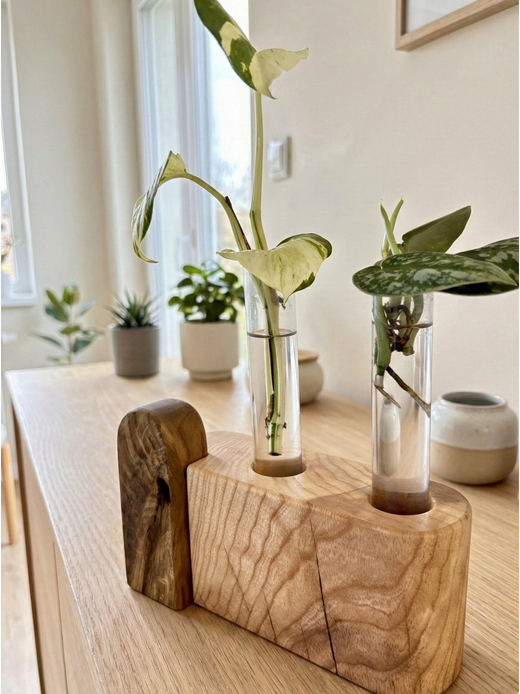 This handmade solid ash/oak wood propagation station combines functionality and aesthetics. It is an original that you will not find anywhere else.