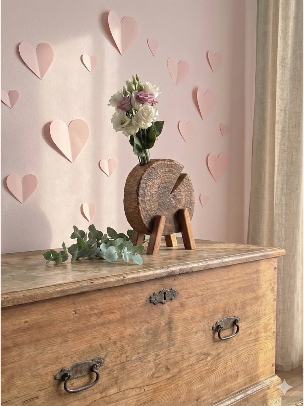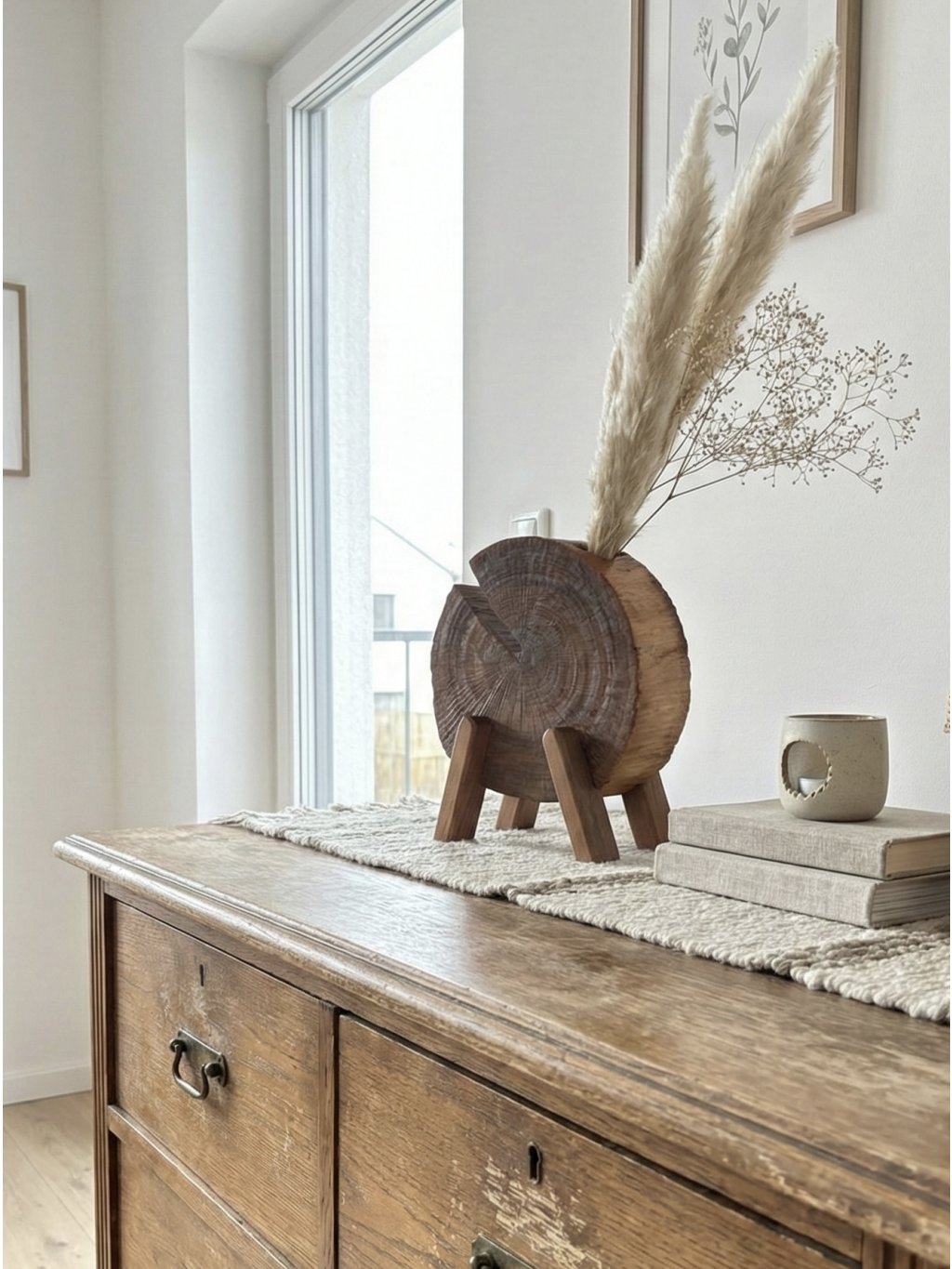 The PLUMMA vase "stands" on three beechwood legs, giving it lightness and an atypical appearance that will stand out on any table or dresser. The solid plum wood with its typical color and grain is hand-worked and treated with natural oil.