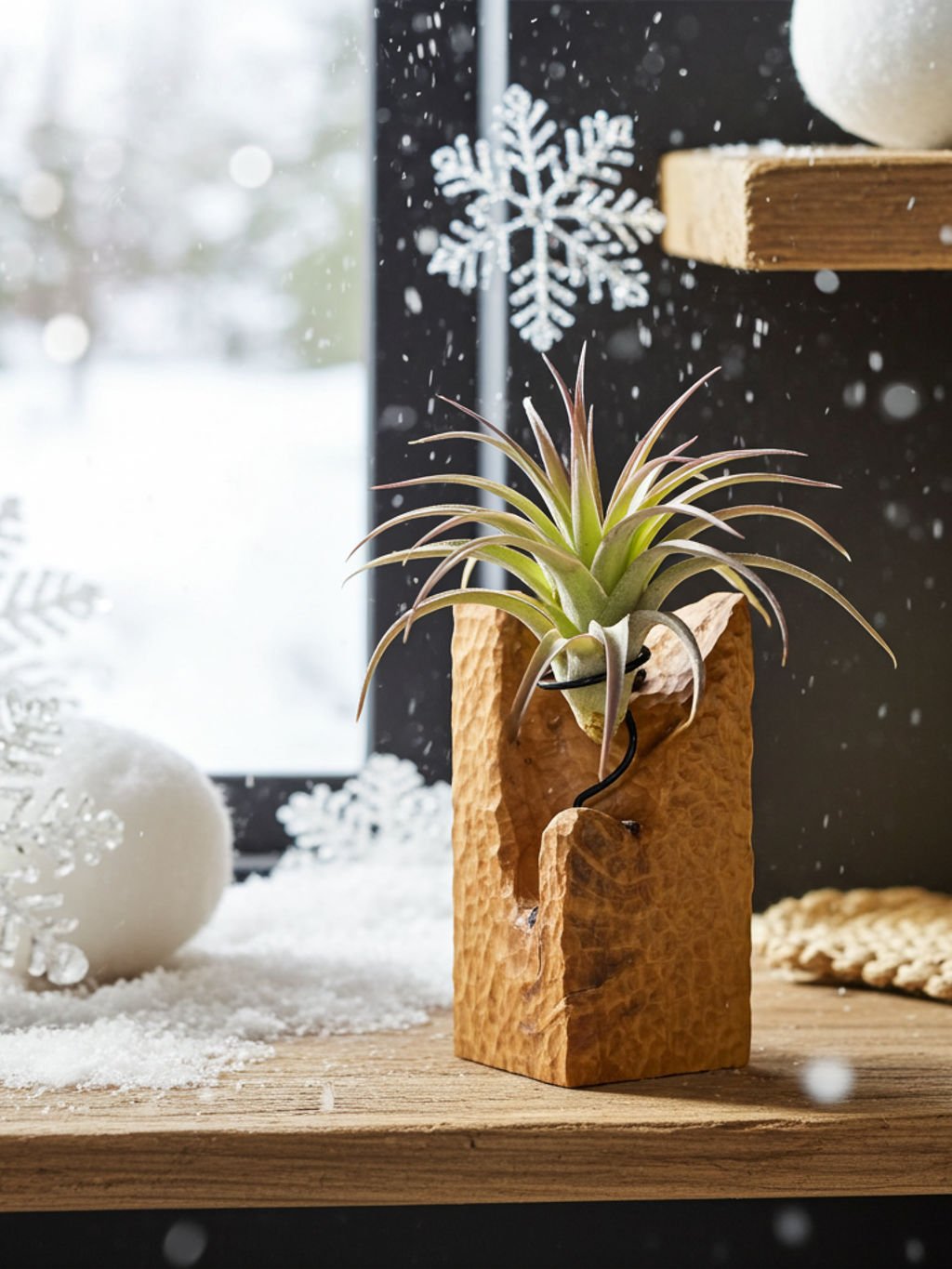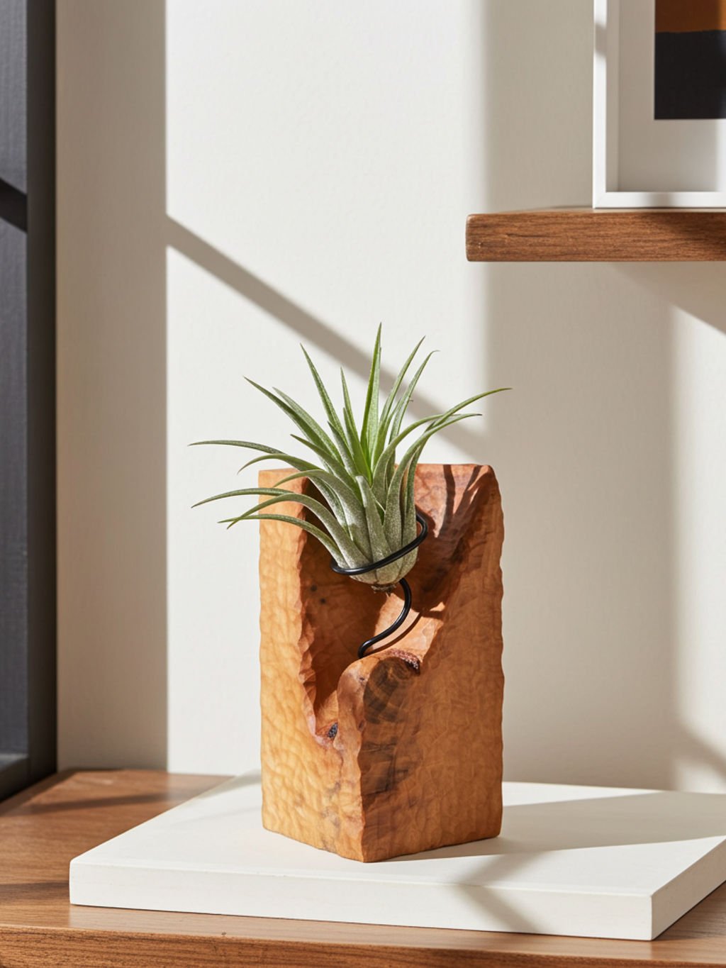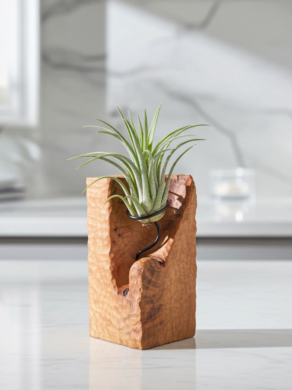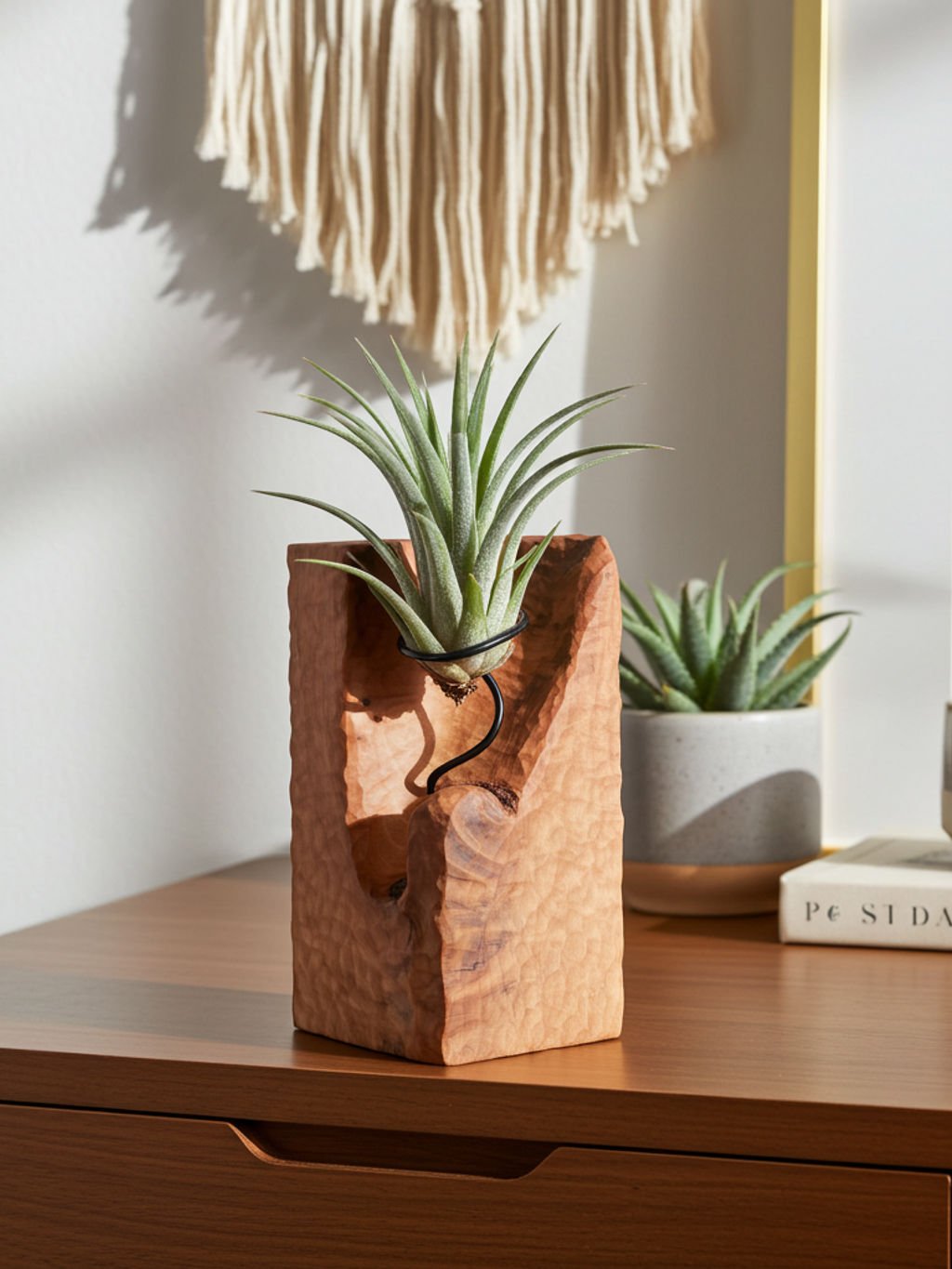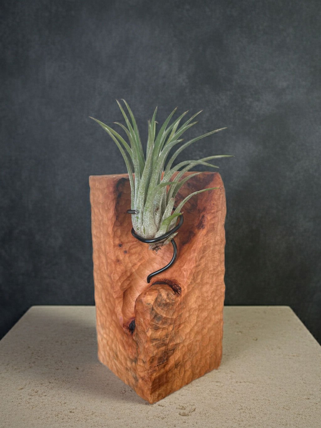 Ručne vyrobený bukový stojan na tilandsiu – z jedného kusu dreva.