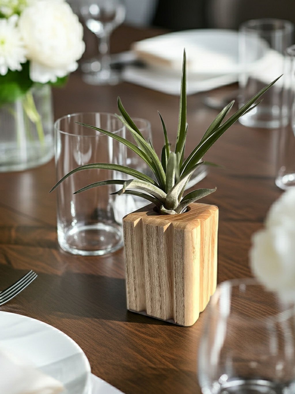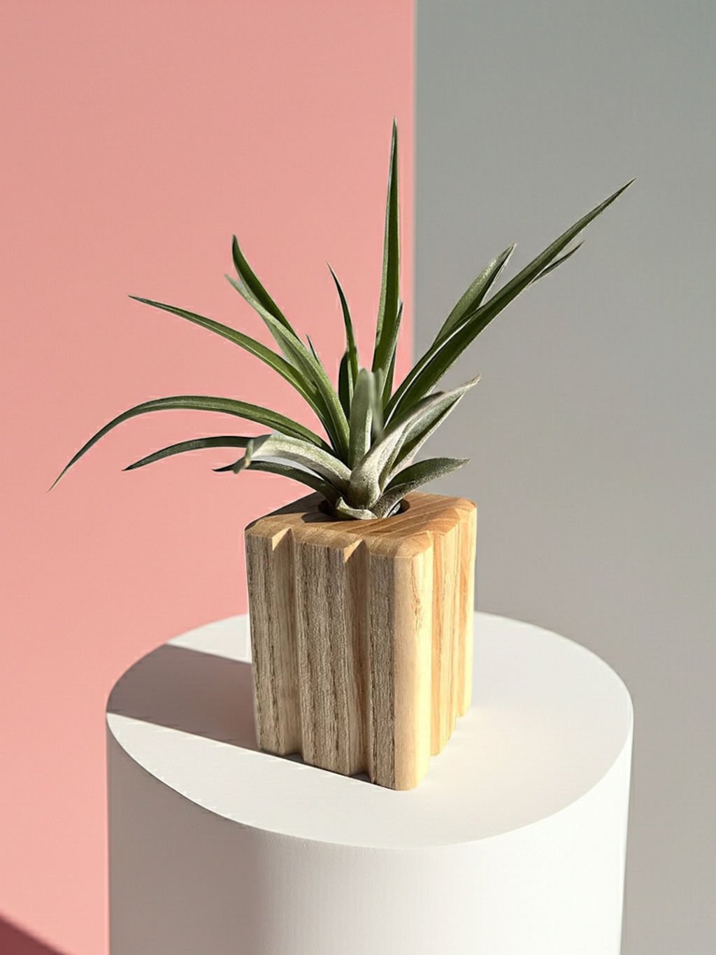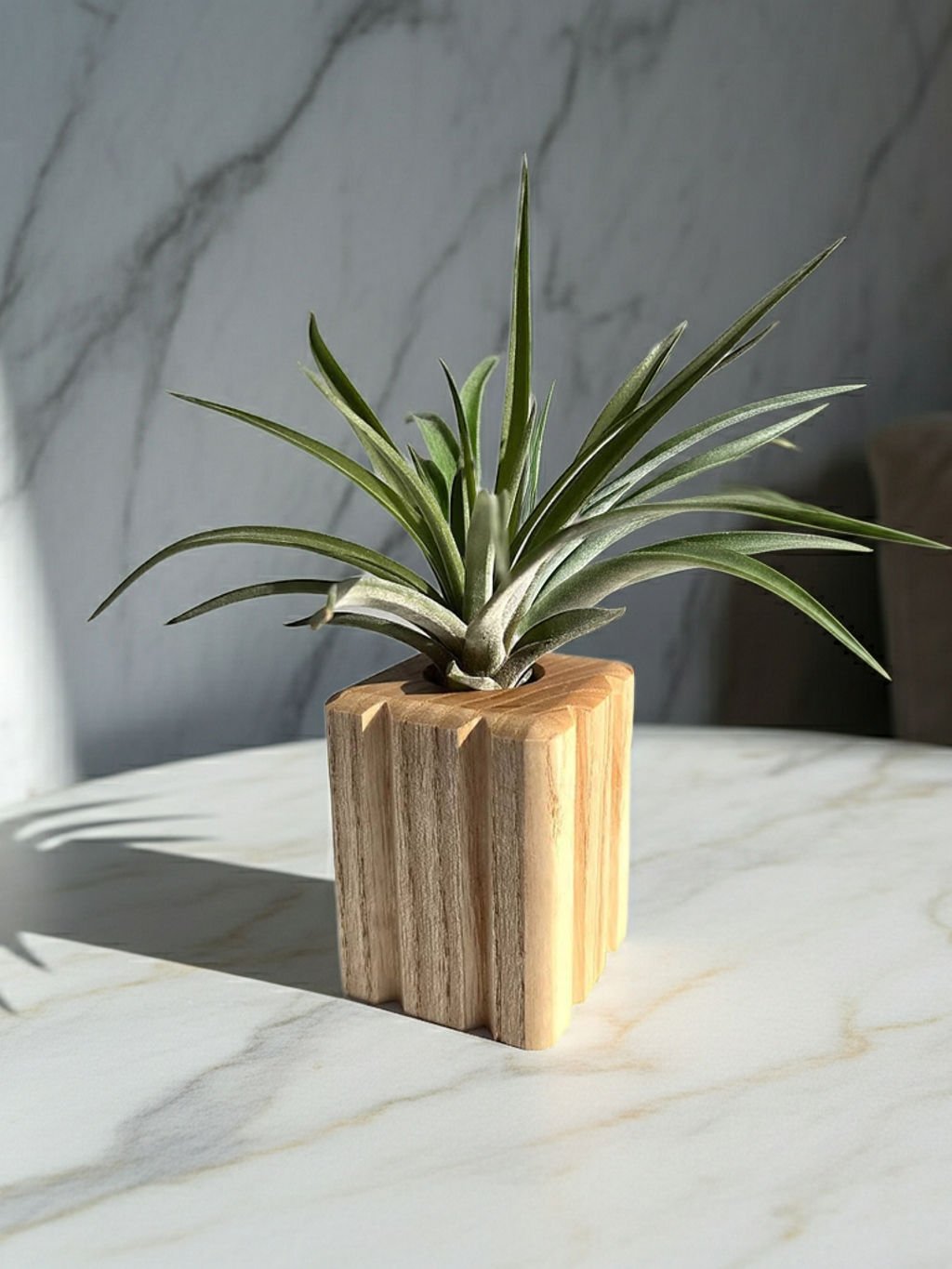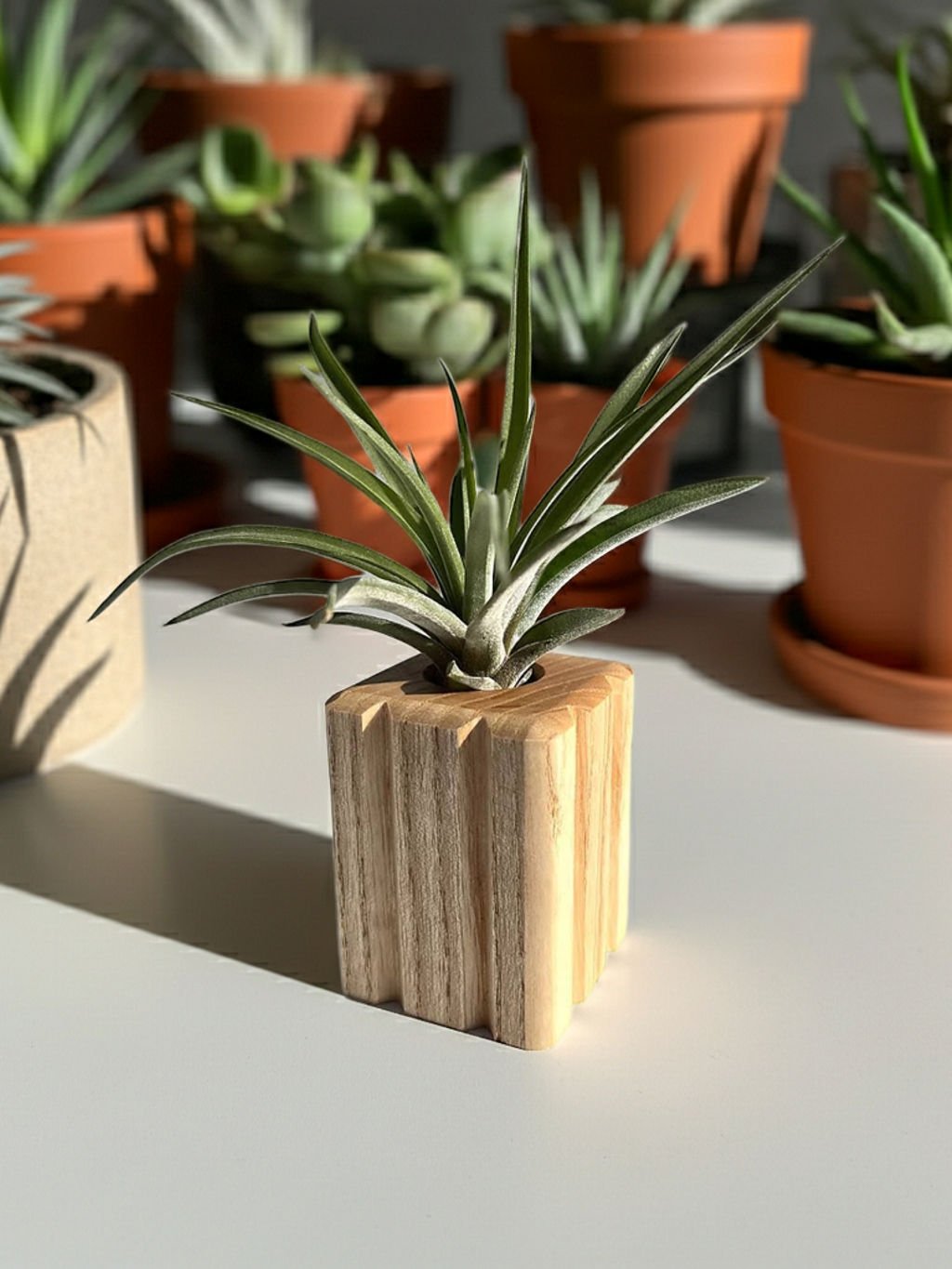 Vytvorte si malý zelený ostrovček na pracovnom stole, polici alebo na parapete. Bez zbytočností. Bez plastu. Iba drevo, vzduch a život.