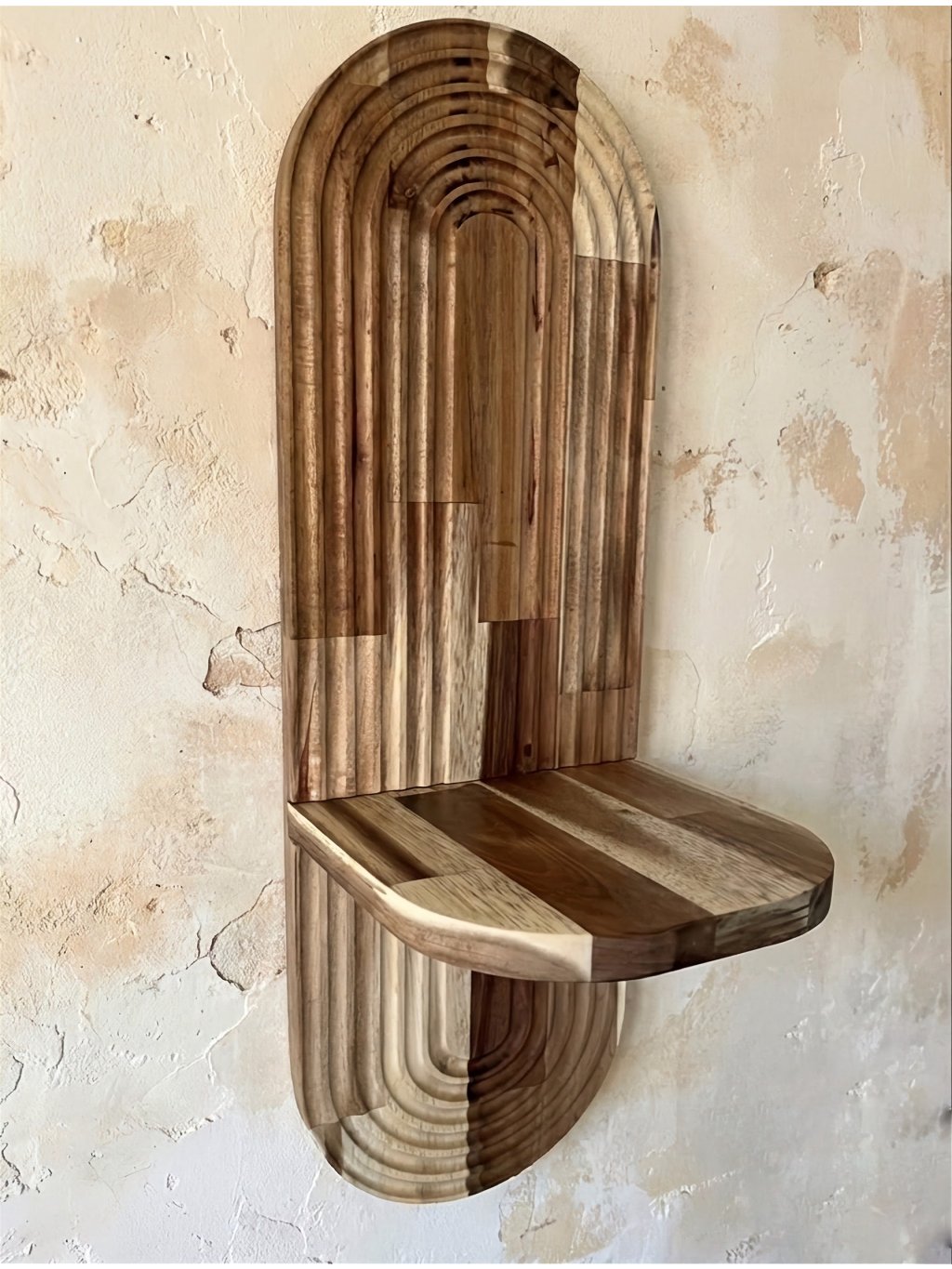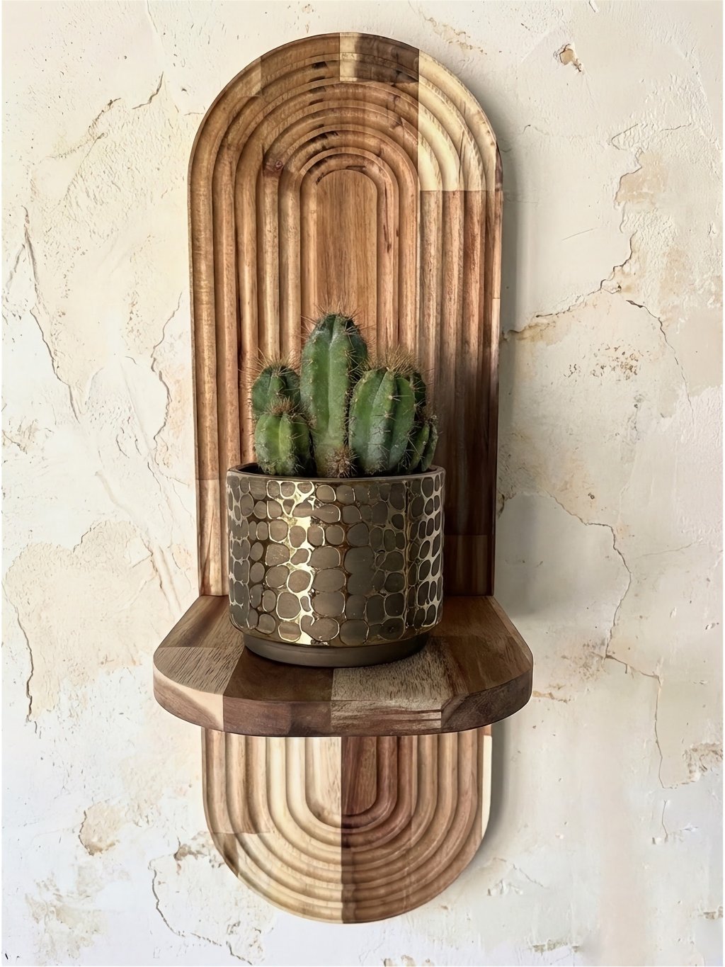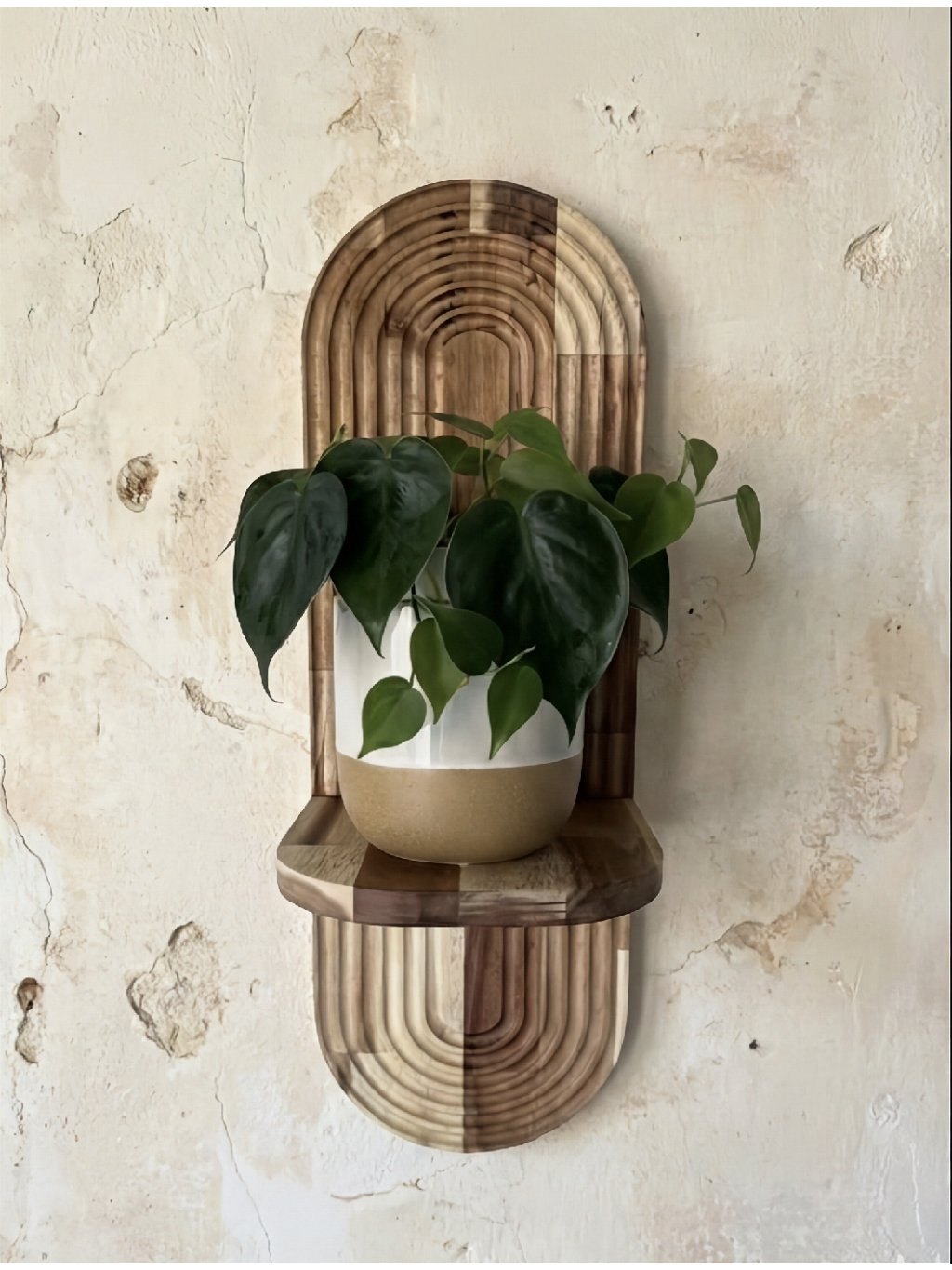 Vneste do svojho domova prírodný nádych a moderný dizajn s týmto ručne vyrobeným nástenným stojanom na kvety z kvalitného akáciového dreva. Jeho geometrický vzor s pravidelnými oblúkmi pôsobí štýlovo a elegantne, vďaka čomu vynikne v akejkoľvek miestnosti – obývačke, pracovni, spálni alebo na chodbe.