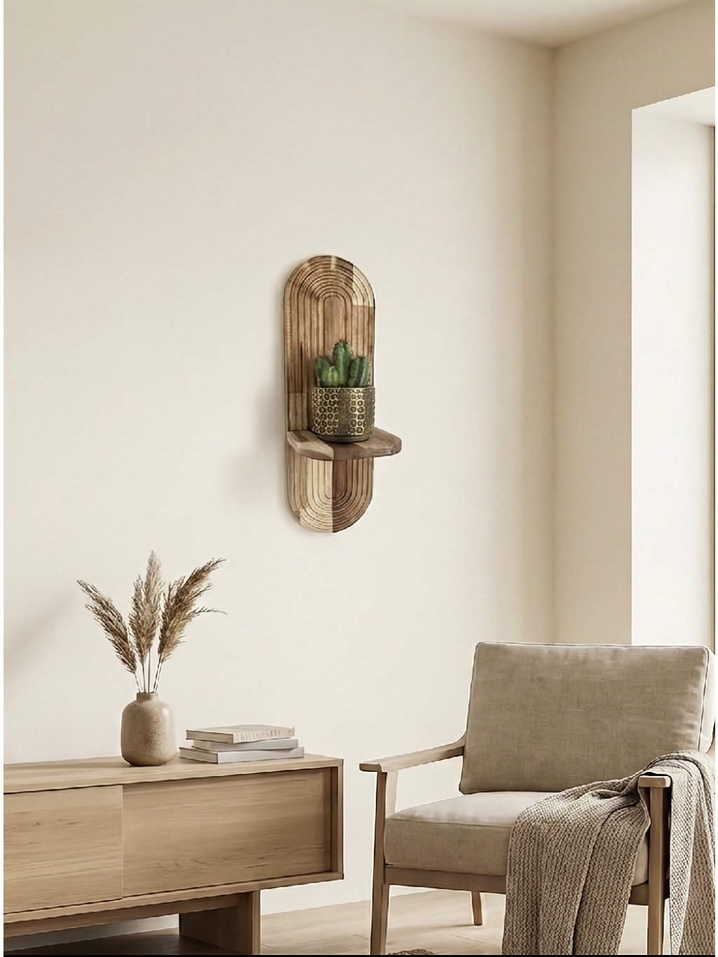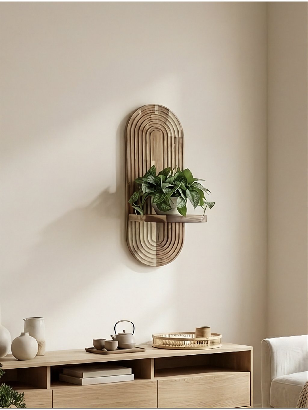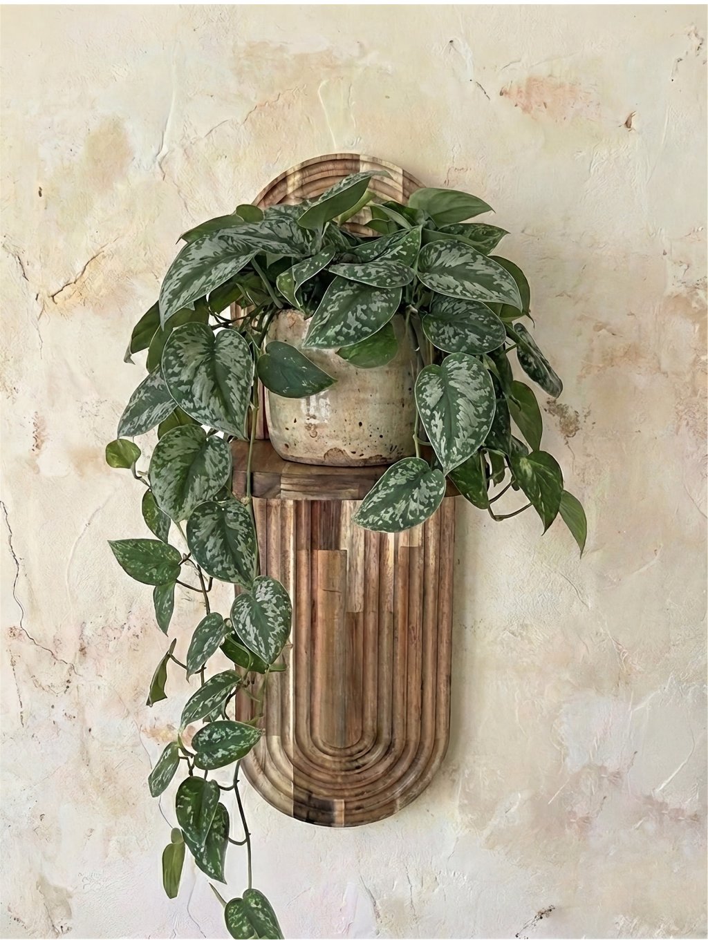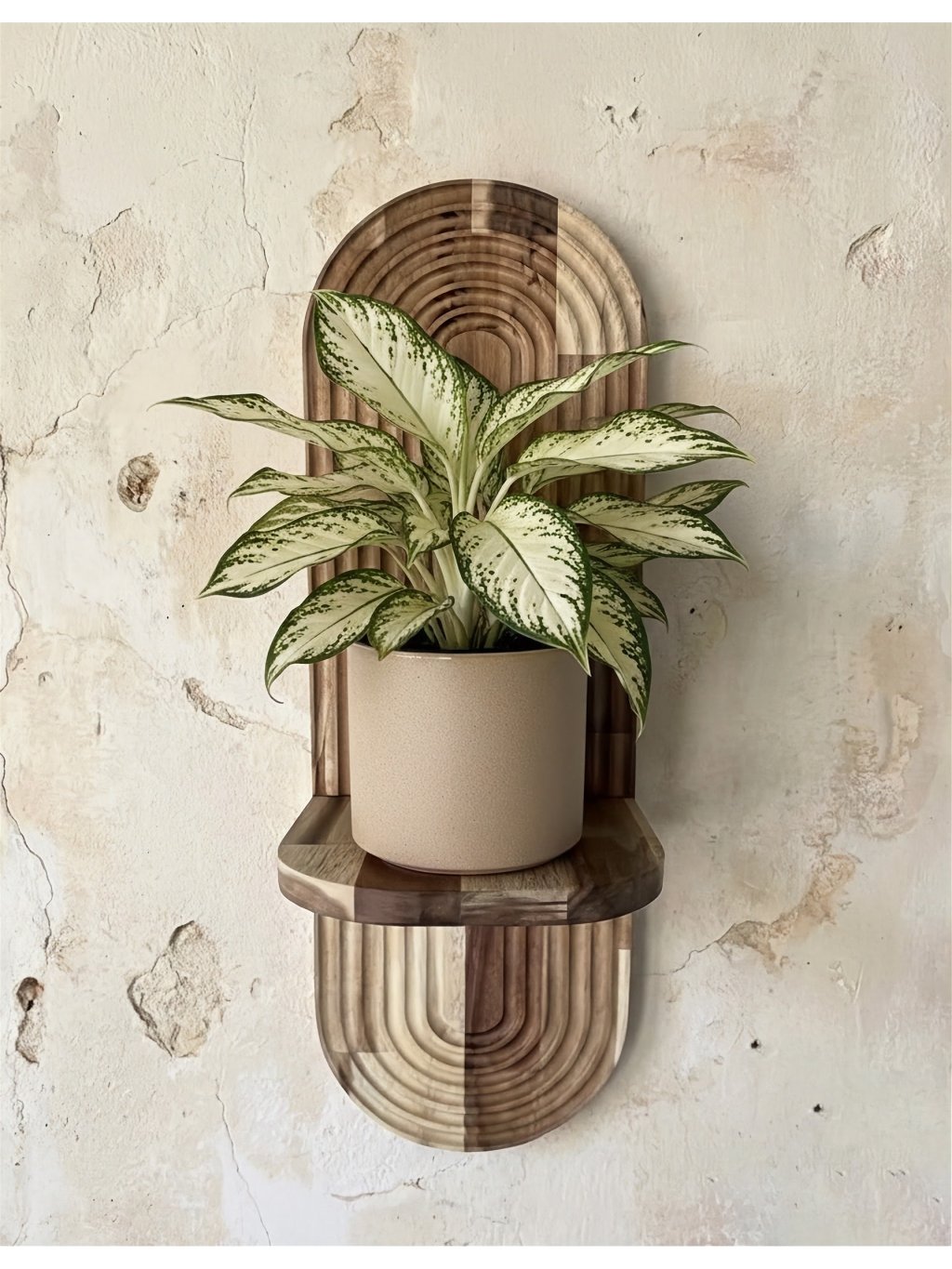 Vneste do svojho domova prírodný nádych a moderný dizajn s týmto ručne vyrobeným nástenným stojanom na kvety z kvalitného akáciového dreva. Jeho geometrický vzor s pravidelnými oblúkmi pôsobí štýlovo a elegantne, vďaka čomu vynikne v akejkoľvek miestnosti – obývačke, pracovni, spálni alebo na chodbe.
