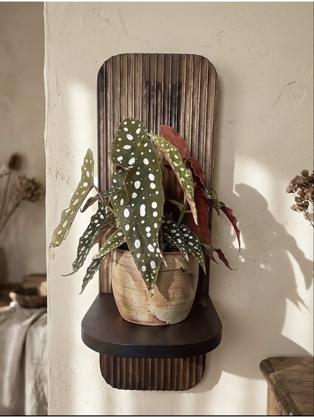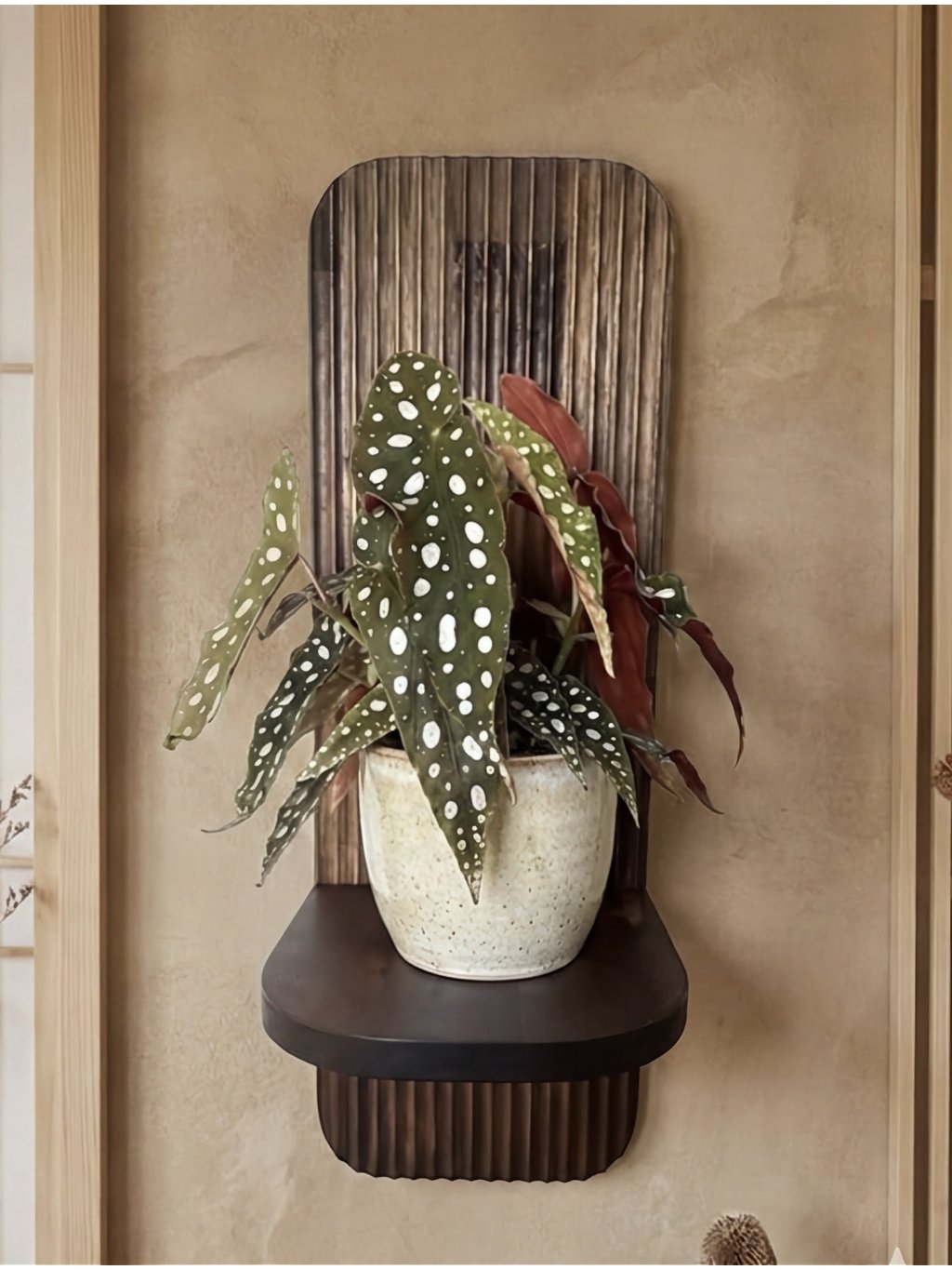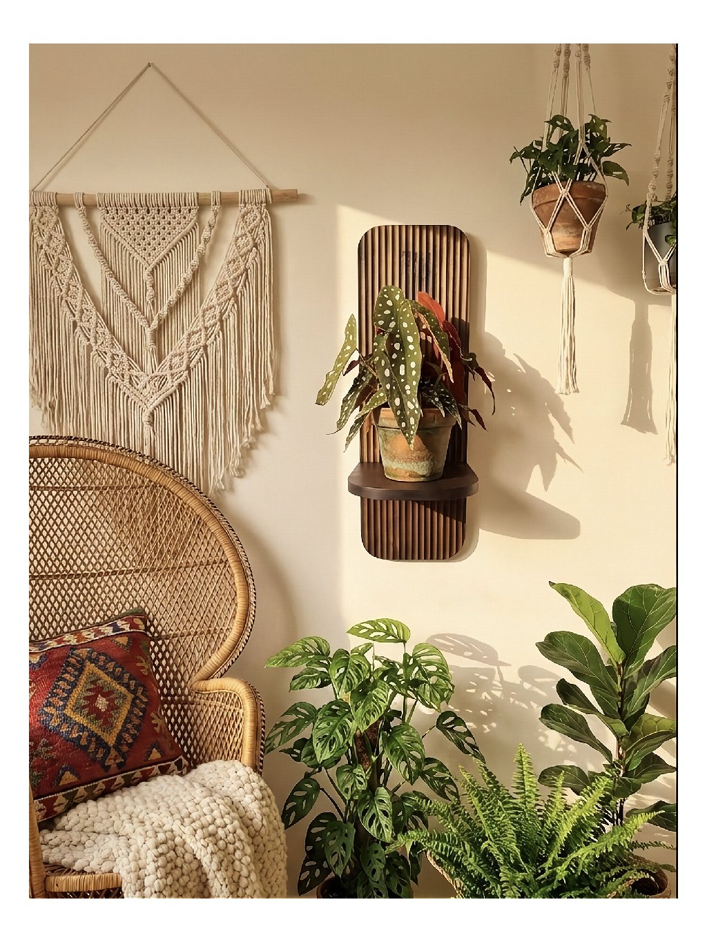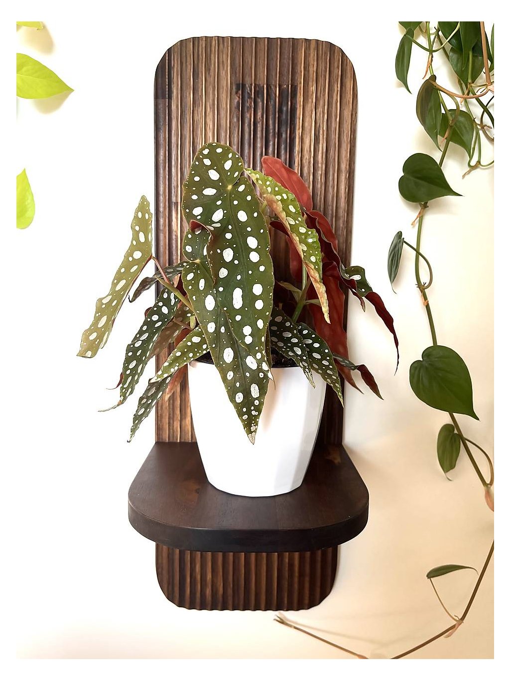 Drevený nástenný držiak na kvetináč z akáciového dreva – ručne vyrobený dizajnový doplnok do interiéru