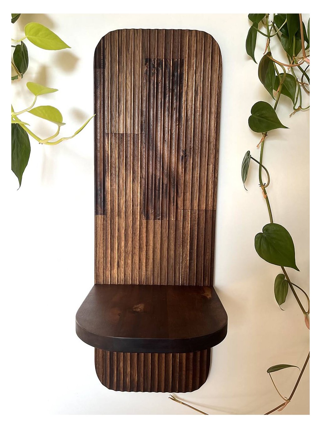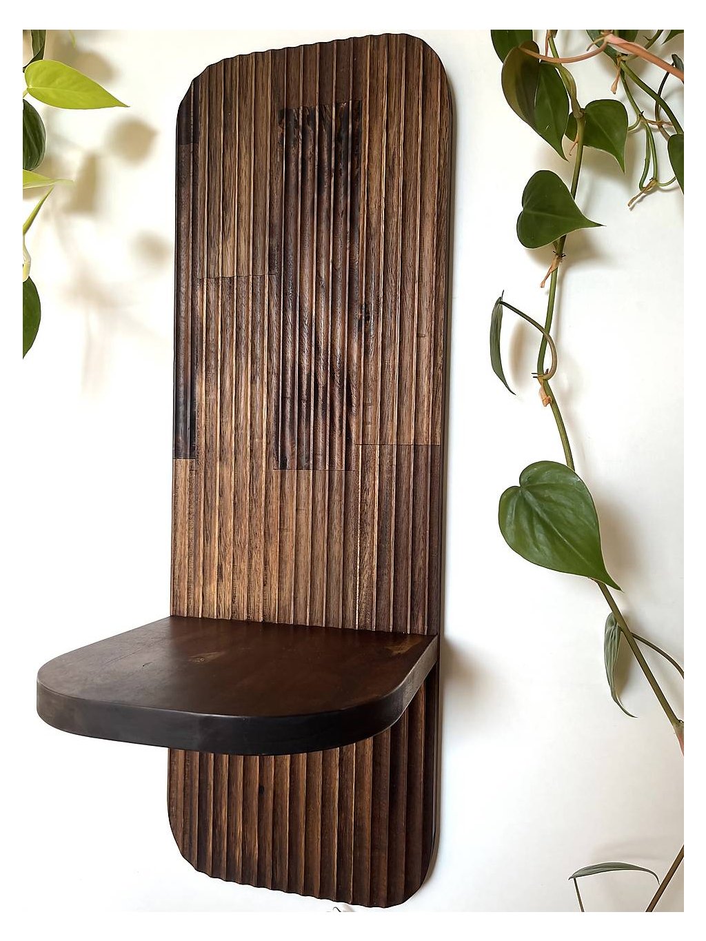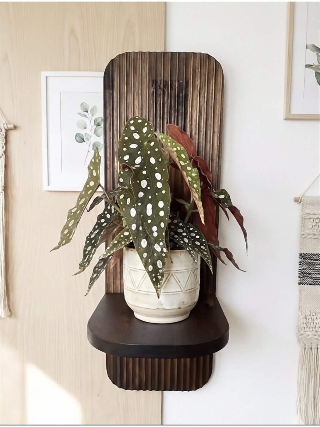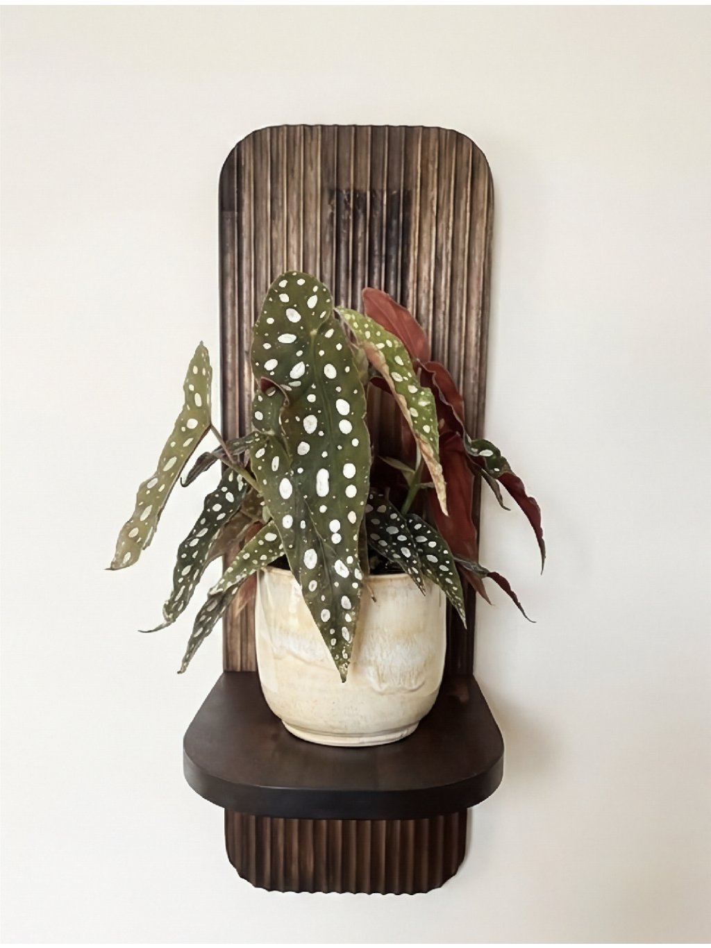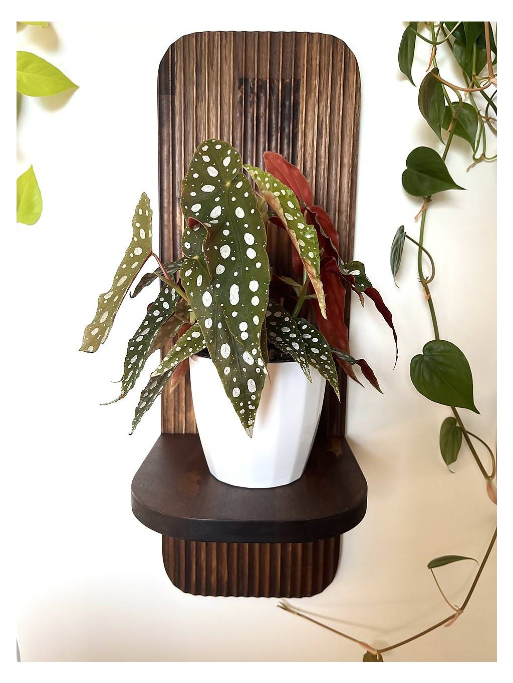 Drevený nástenný držiak na kvetináč z akáciového dreva – ručne vyrobený dizajnový doplnok do interiéru