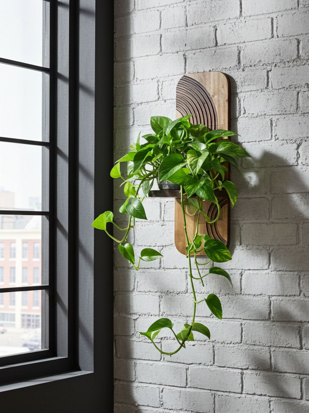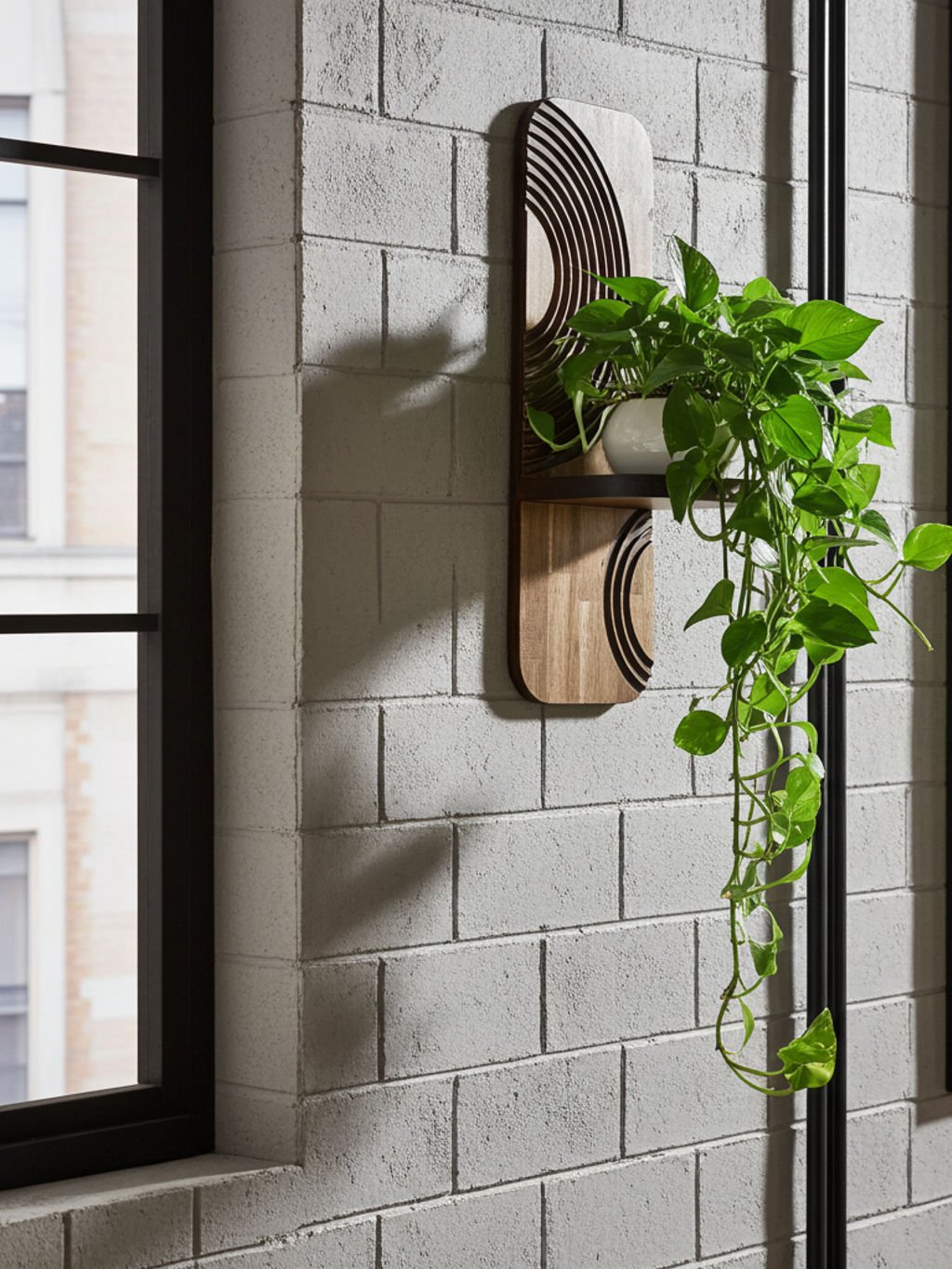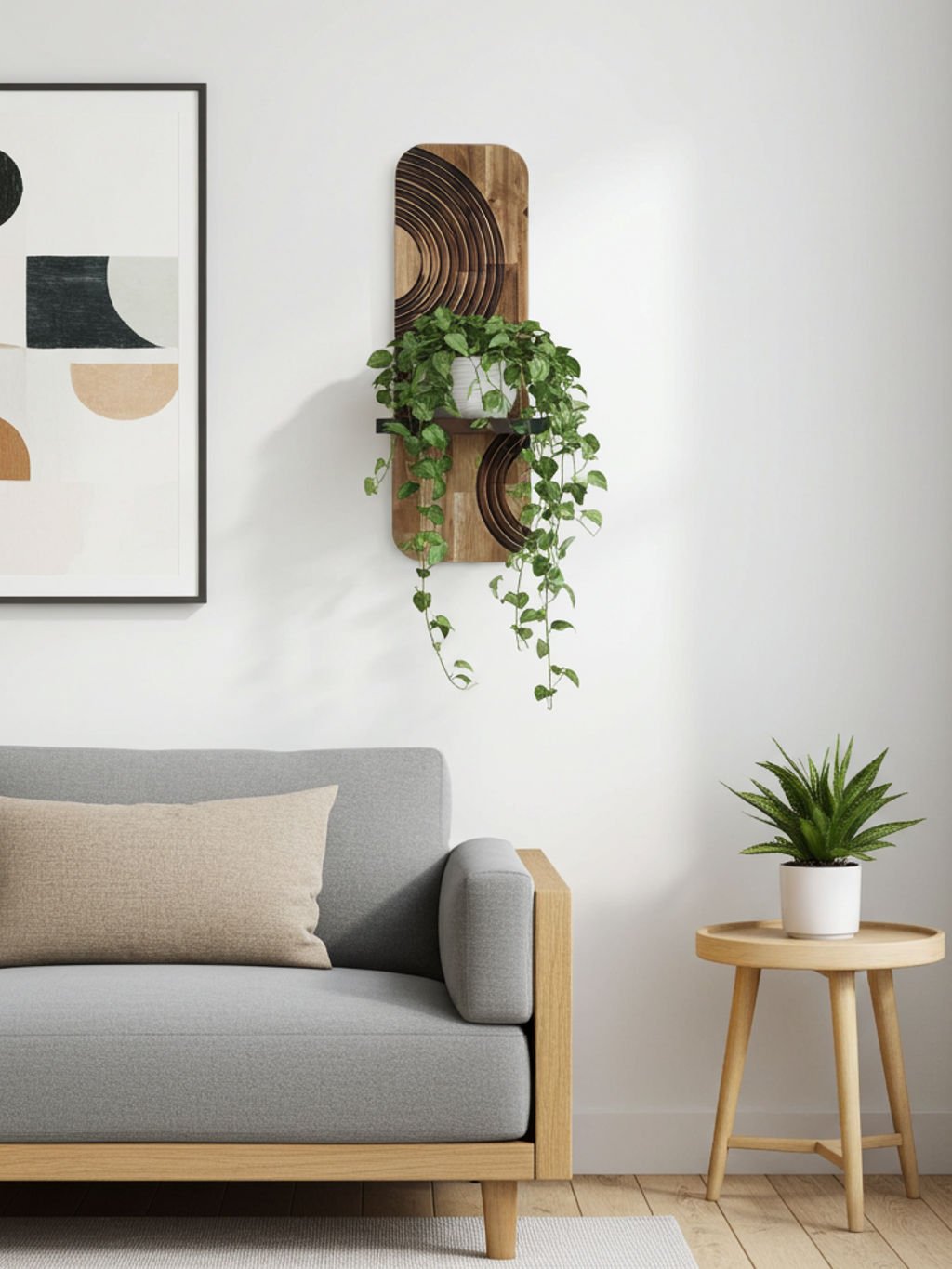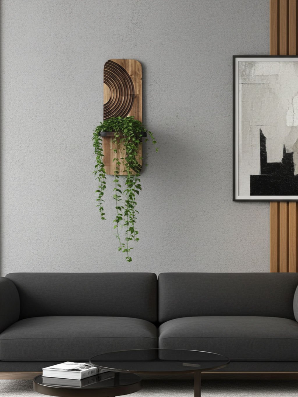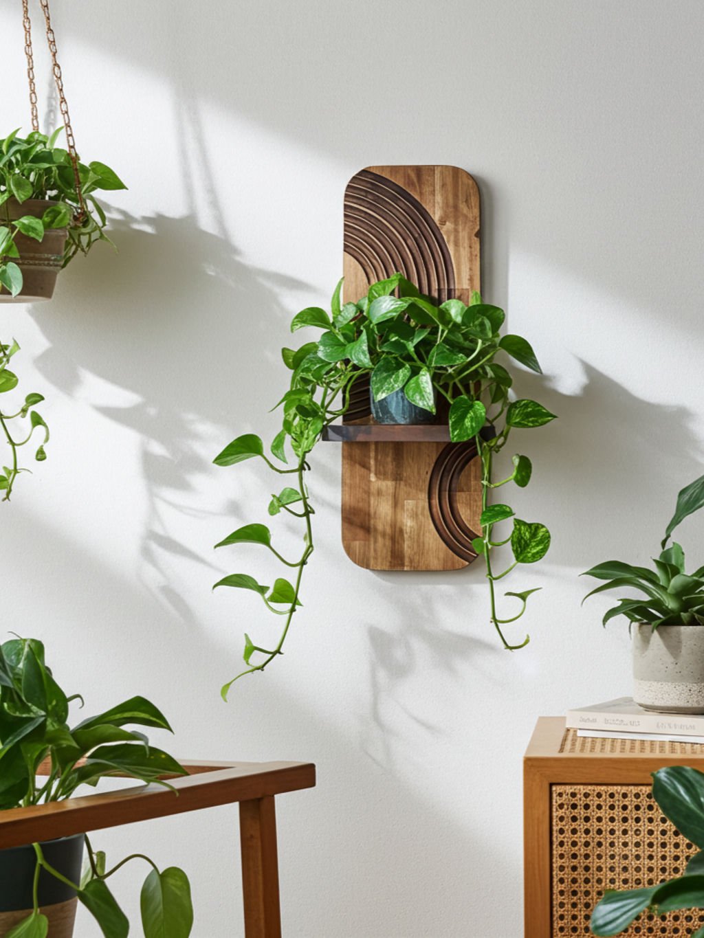 Drevený nástenný držiak na kvetináč z akáciového dreva – ručne vyrobený dizajnový doplnok do interiéru