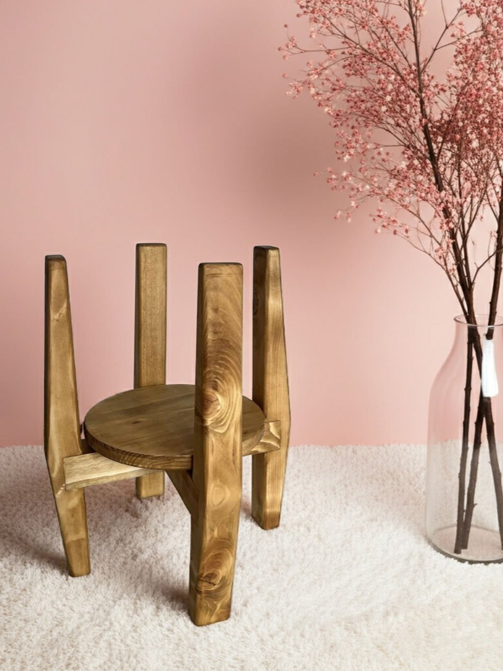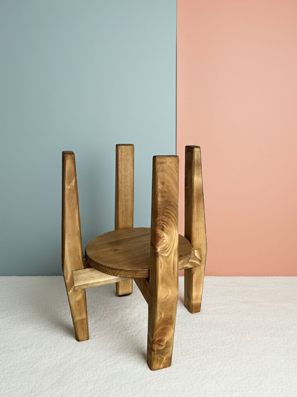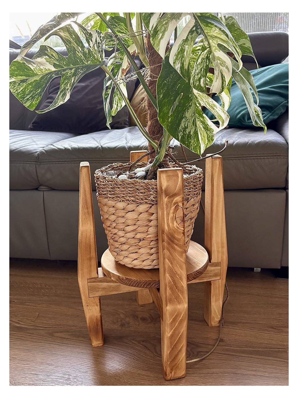 • Estetický Dizajn: Stojan je ručne vyrobený z prírodného smrekového dreva s viditeľnou kresbou, čo dodáva každému kusu originálny a teplý škandinávsky/rustikálny nádych. Perfektne doplní váš moderný interiér aj kvetináče.