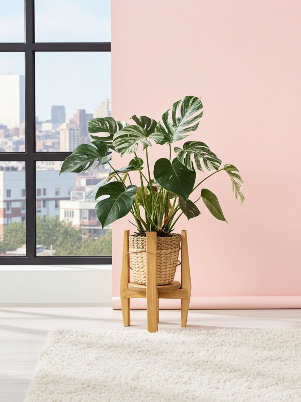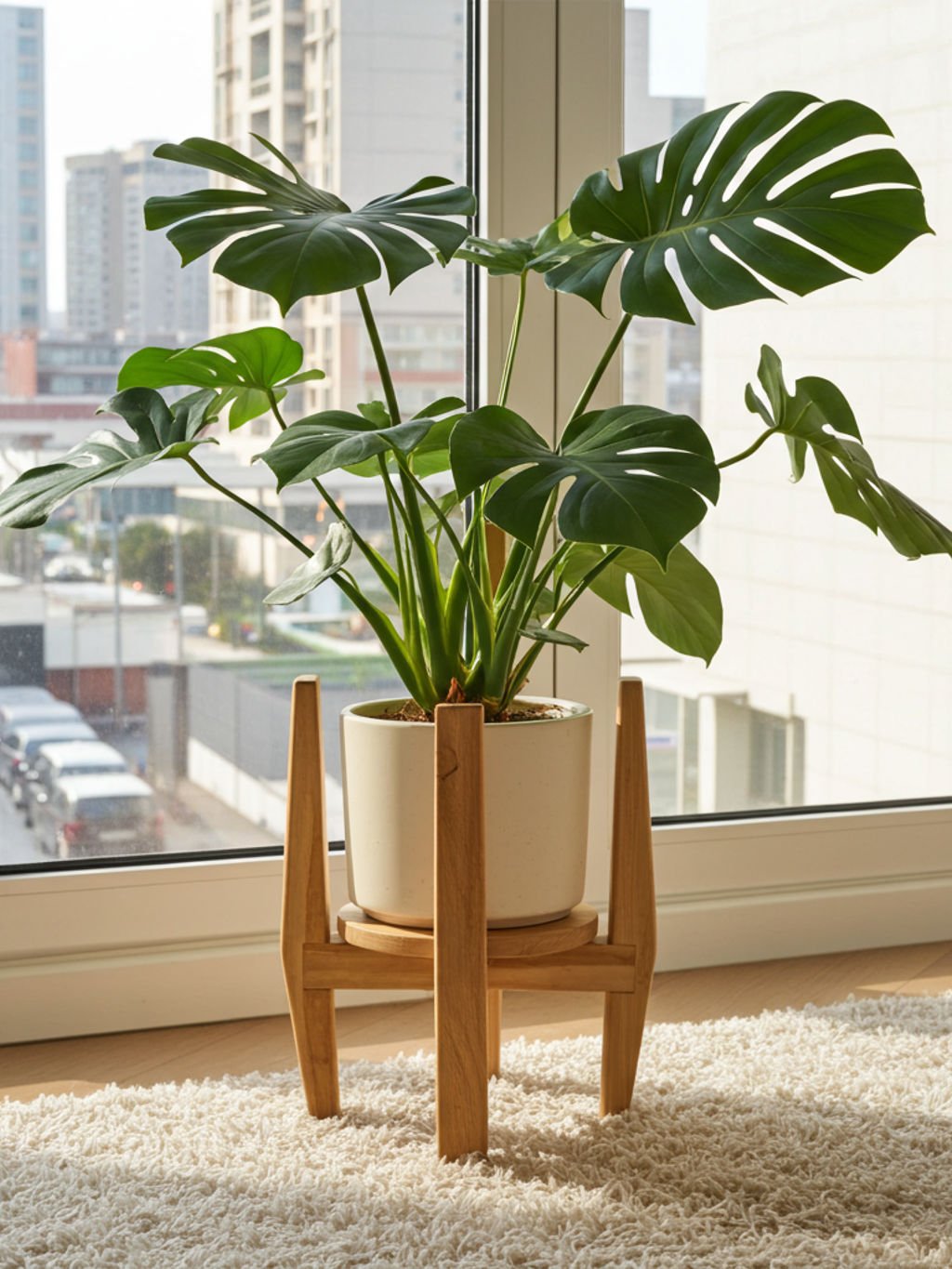 Predstavujeme vám otočný stojan na kvety, navrhnutý pre všetkých milovníkov izbovej zelene. Tento drevený kvetinový stojan rieši častý problém: listy vašej rastliny, ako je Monstera alebo Alocasia, sa neustále naťahujú len k jednému zdroju svetla, čo vedie k jednostrannému a nerovnomernému rastu.