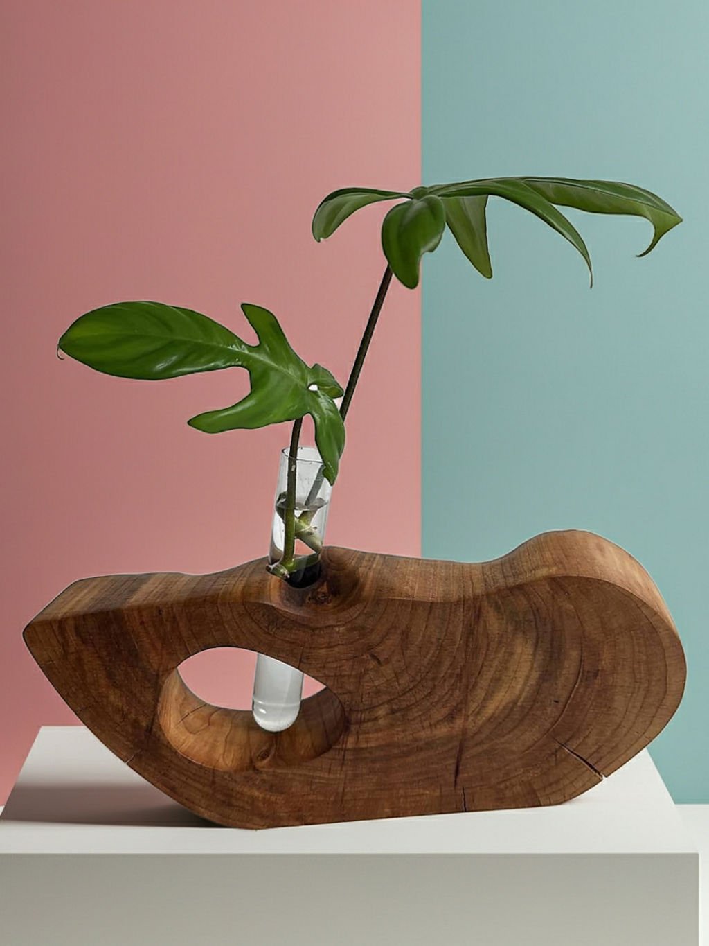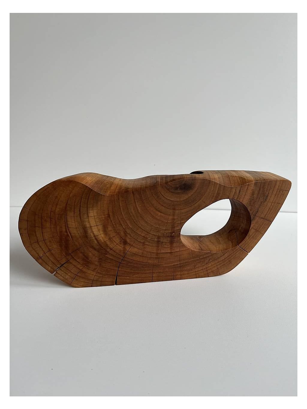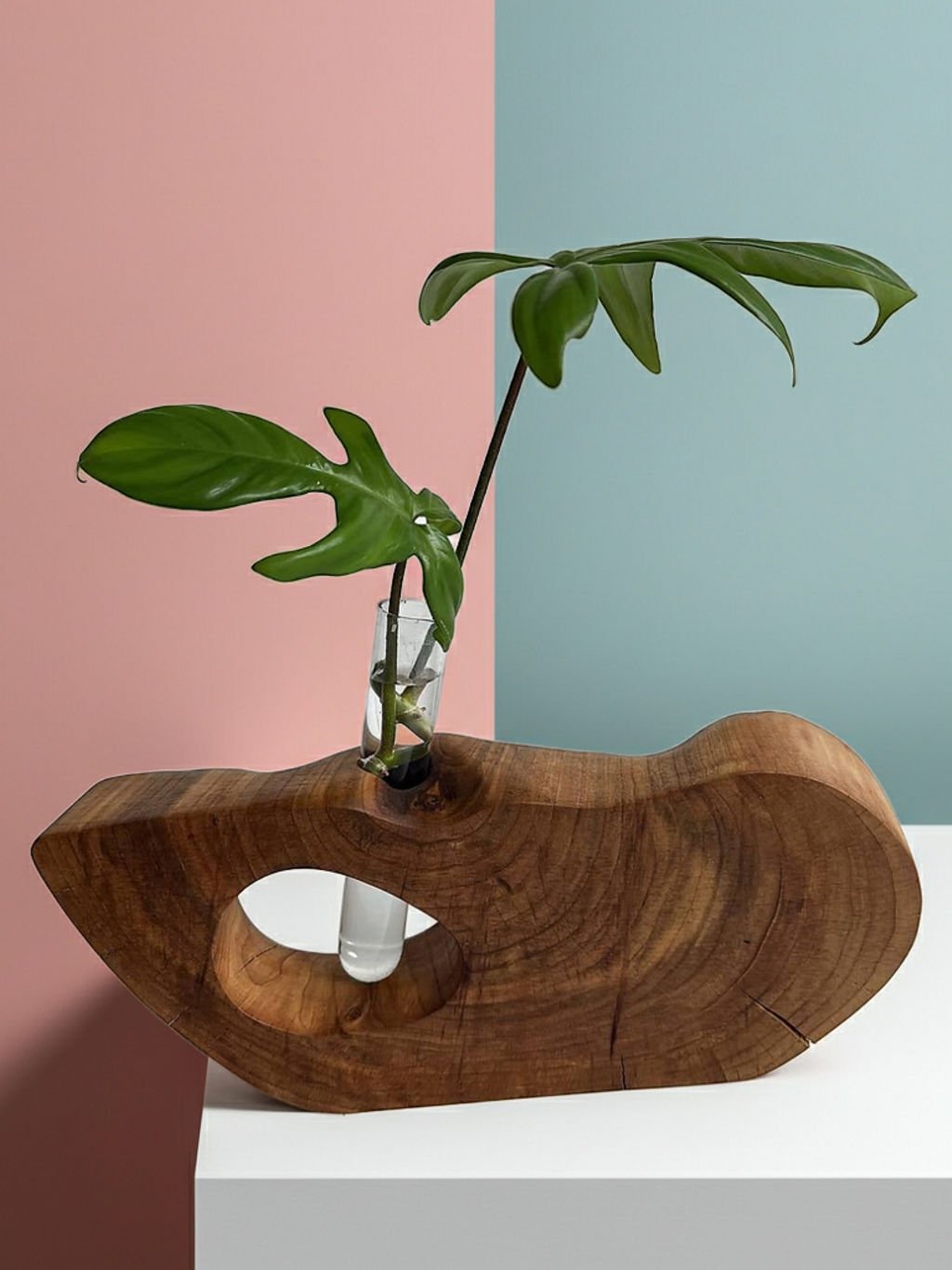 Je to ručne vyrezávaná váza z jedného kusa dreva, čo zaručuje jej vysokú kvalitu a jedinečnosť. Hladké krivky a zaoblené hrany sú doplnené efektným otvorom v strede, ktorý pridáva na jej modernom a umeleckom vzhľade. Nejde len o vázu – je to handmade umelecké dielo a bytový doplnok, ktorý okamžite pritiahne pozornosť.