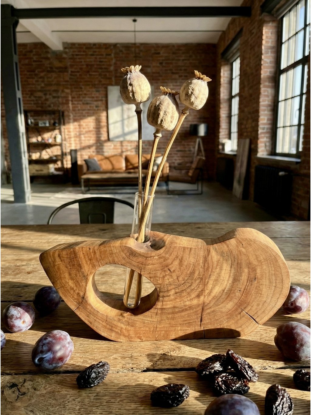Táto dizajnová drevená váza je skutočným stelesnením minimalistickej drevenej dekorácie. Jej organický a nepravidelný tvar, ktorý pripomína vodou obrúsený riečny kamienok, vnesie do vášho domova harmóniu ticha a hrejivú energiu slivkového dreva.