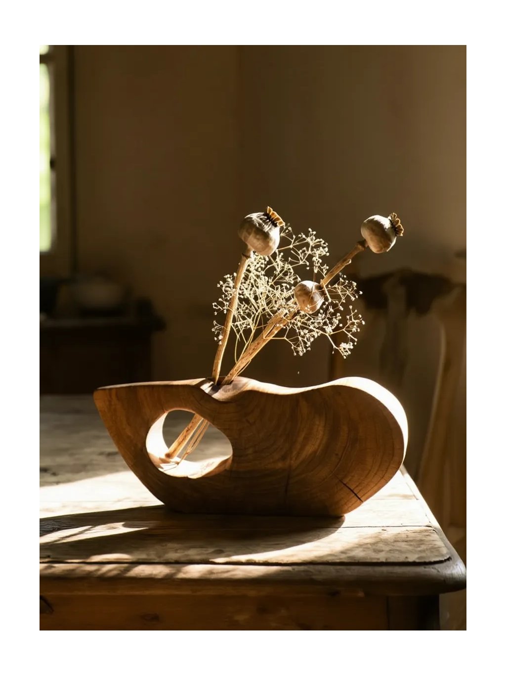 Váza je vďaka svojmu prírodnému vzhľadu ideálna na rôzne sezónne aranžmány. Je to perfektná drevená váza na sušené kvety, váza na suché aranžmány (ako sú makovice a pampová tráva), jesenné vetvičky, či vianočné dekorácie.