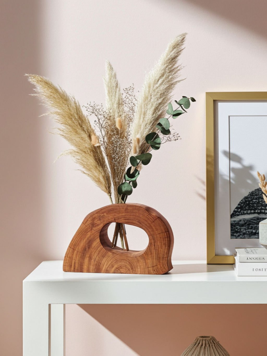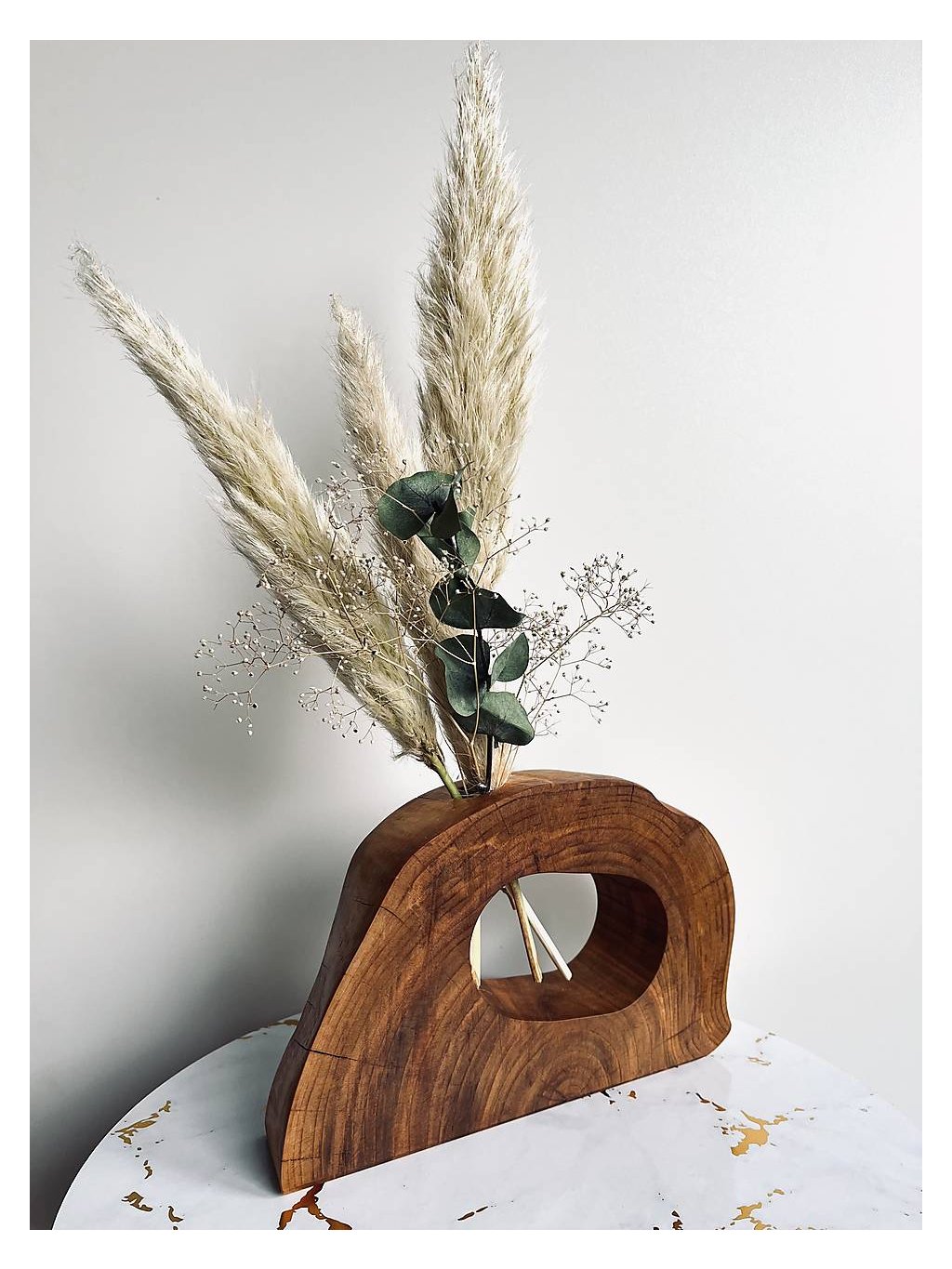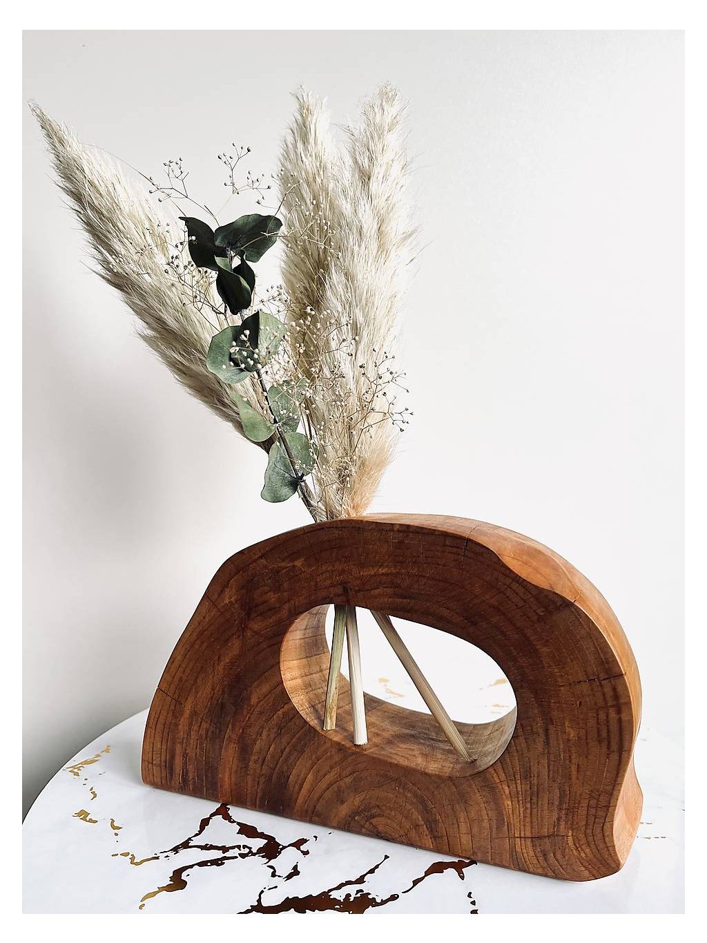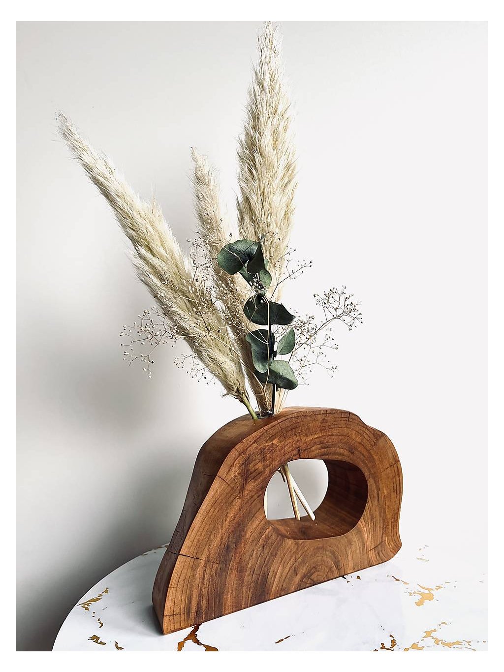 Váza je vďaka svojmu prírodnému vzhľadu ideálna na rôzne sezónne aranžmány. Je to perfektná drevená váza na sušené kvety, váza na suché aranžmány (ako sú makovice a pampová tráva), jesenné vetvičky, či vianočné dekorácie.
