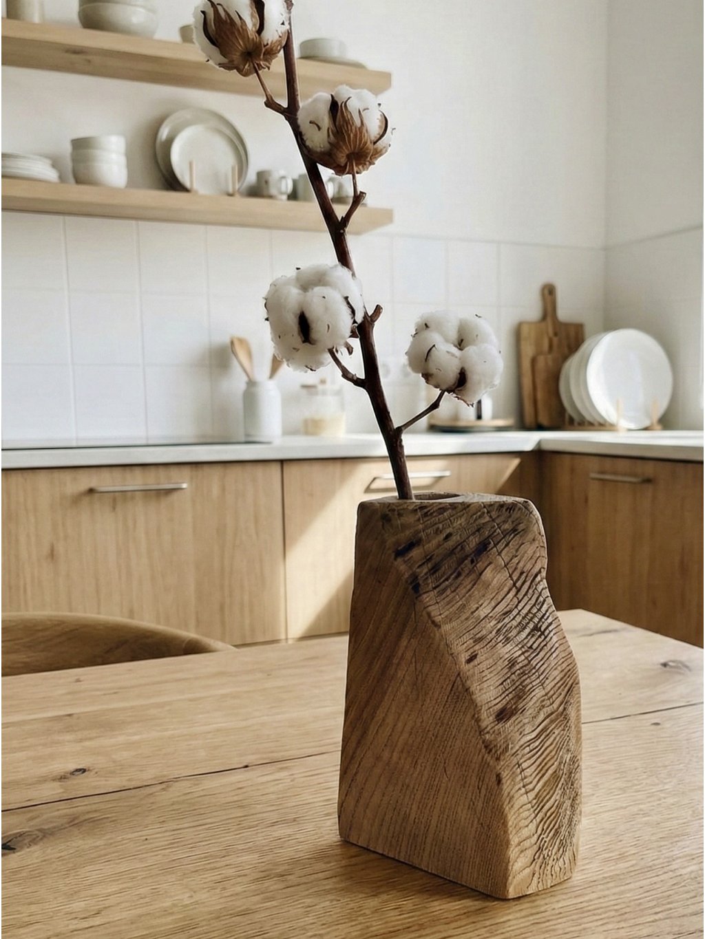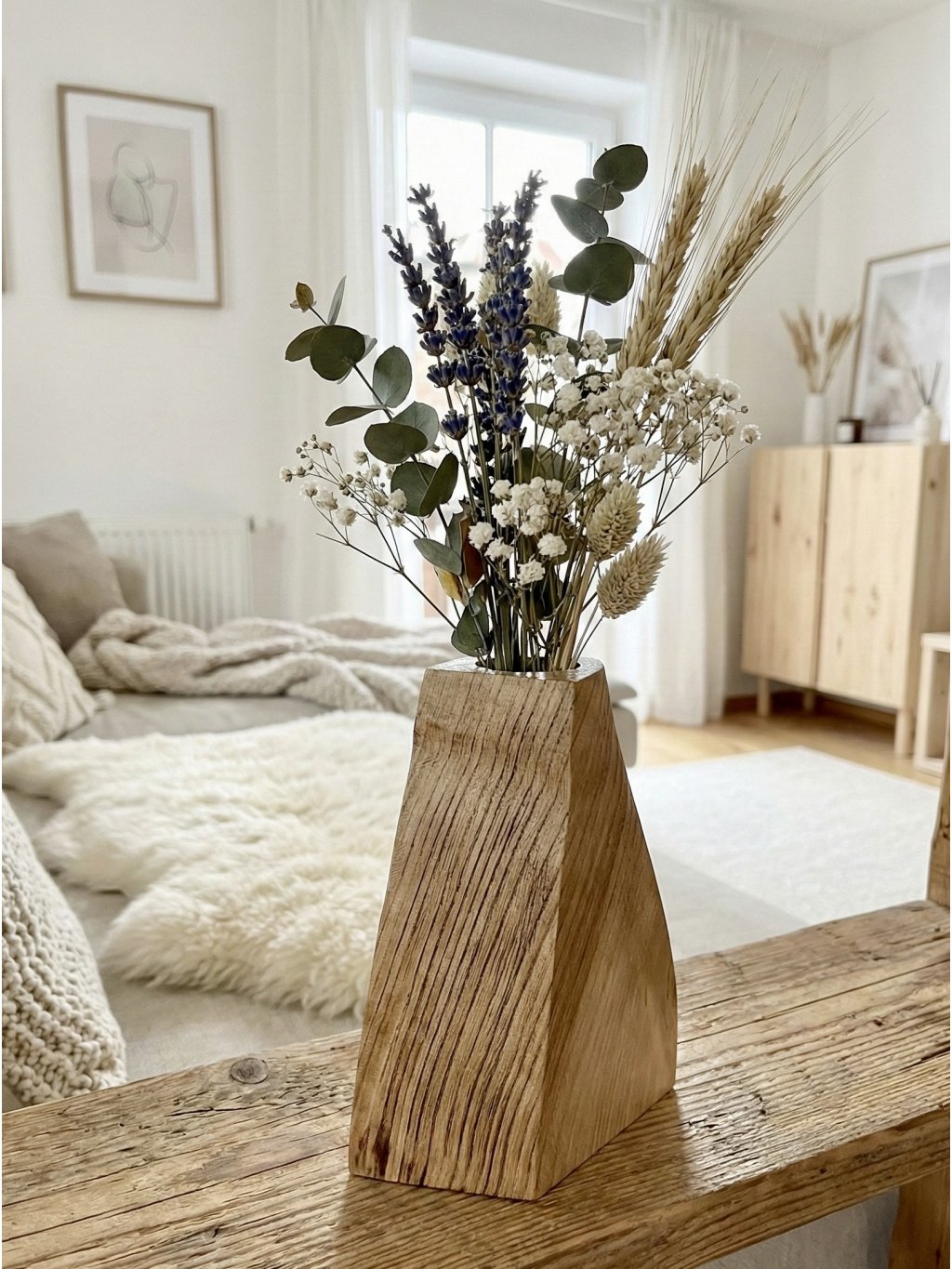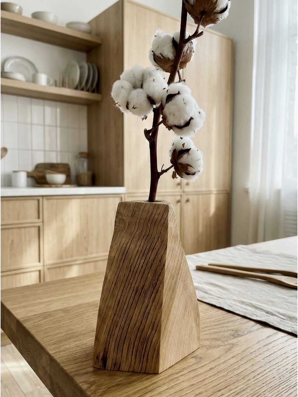 Táto jedinečná váza z jaseňového dreva je perfektným darčekom pre milovníkov prírody a rastlín, ktorí ocenia krásu prírodného materiálu a praktickosť v jednom.
