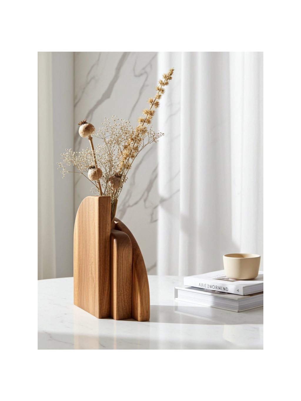 Váza bola vytvorená s dôrazom na jednoduchosť a organické tvary, čím sa stáva skvelým bytovým doplnkom pre akýkoľvek interiér. Je vyrobená z kvalitného dreva, ktoré podčiarkuje jej škandinávsky štýl a dodáva jej hrejivý, prírodný nádych.