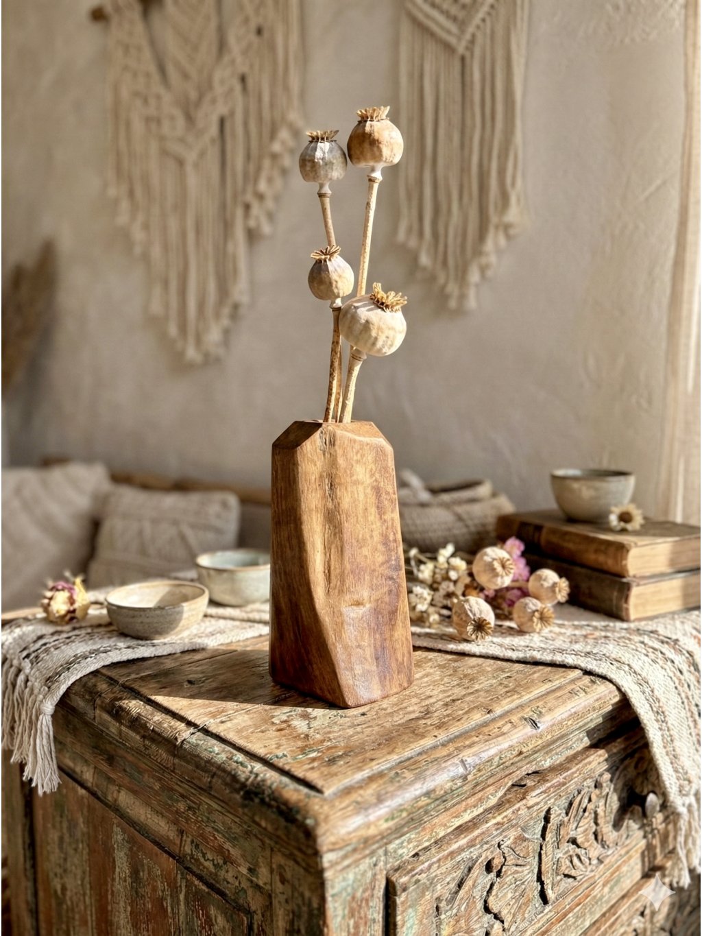 Váza bola vytvorená s dôrazom na jednoduchosť a organické tvary, čím sa stáva skvelým bytovým doplnkom pre akýkoľvek interiér. Je vyrobená z kvalitného orechového dreva, ktoré podčiarkuje jej rustikálny štýl a dodáva jej hrejivý, prírodný nádych.