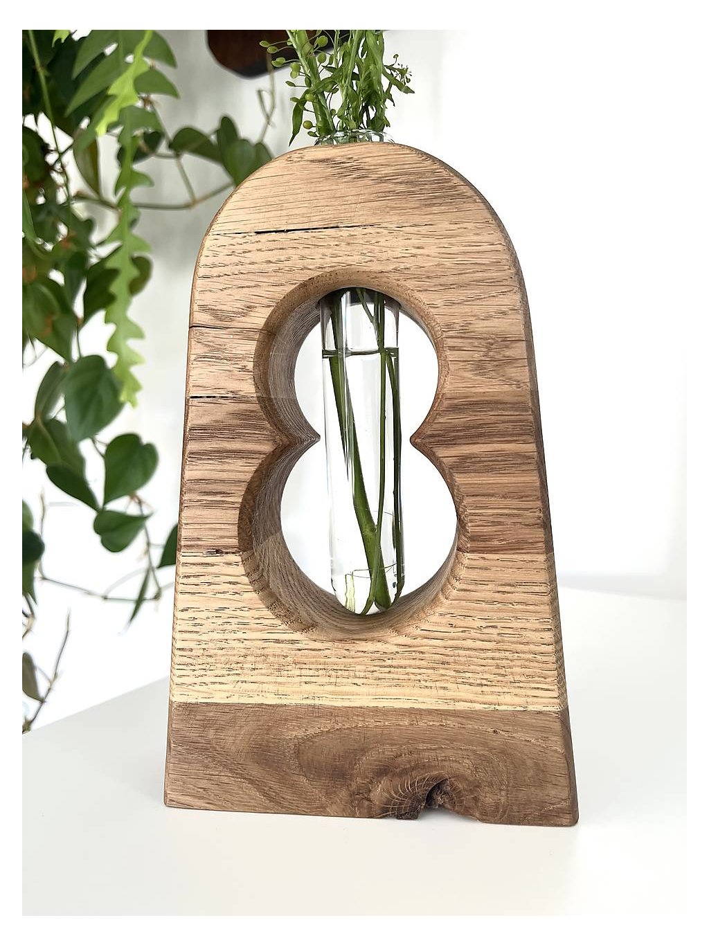 Jedinečná dubová váza so skúmavkou – handmade dekorácia & zakoreňovač v jednom