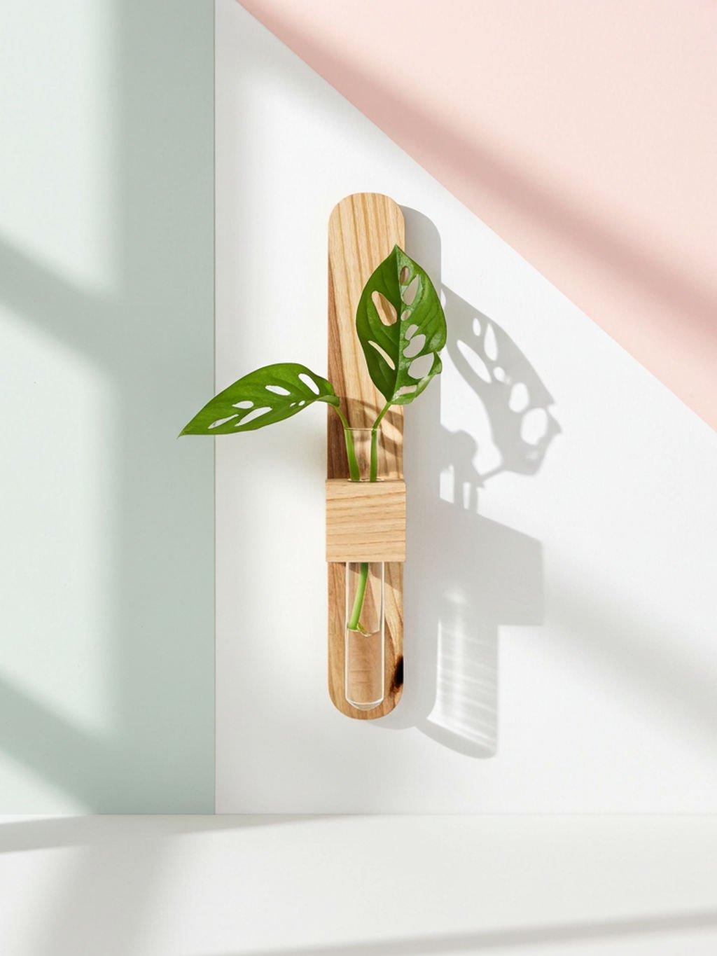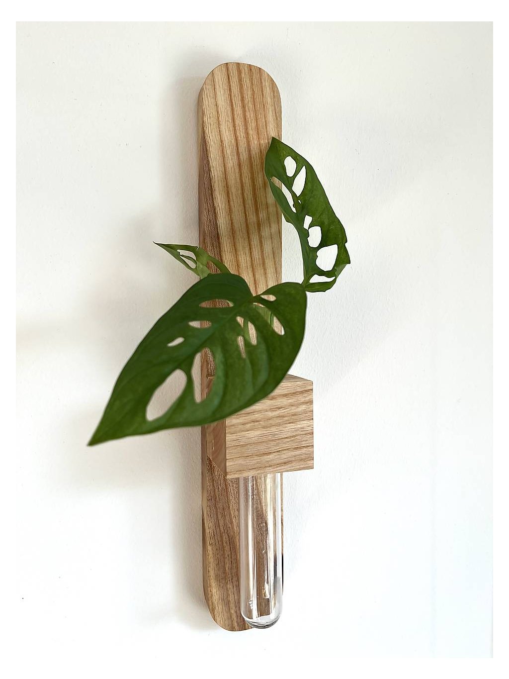 Nástenný zakoreňvač z jaseňového dreva so skúmavkou